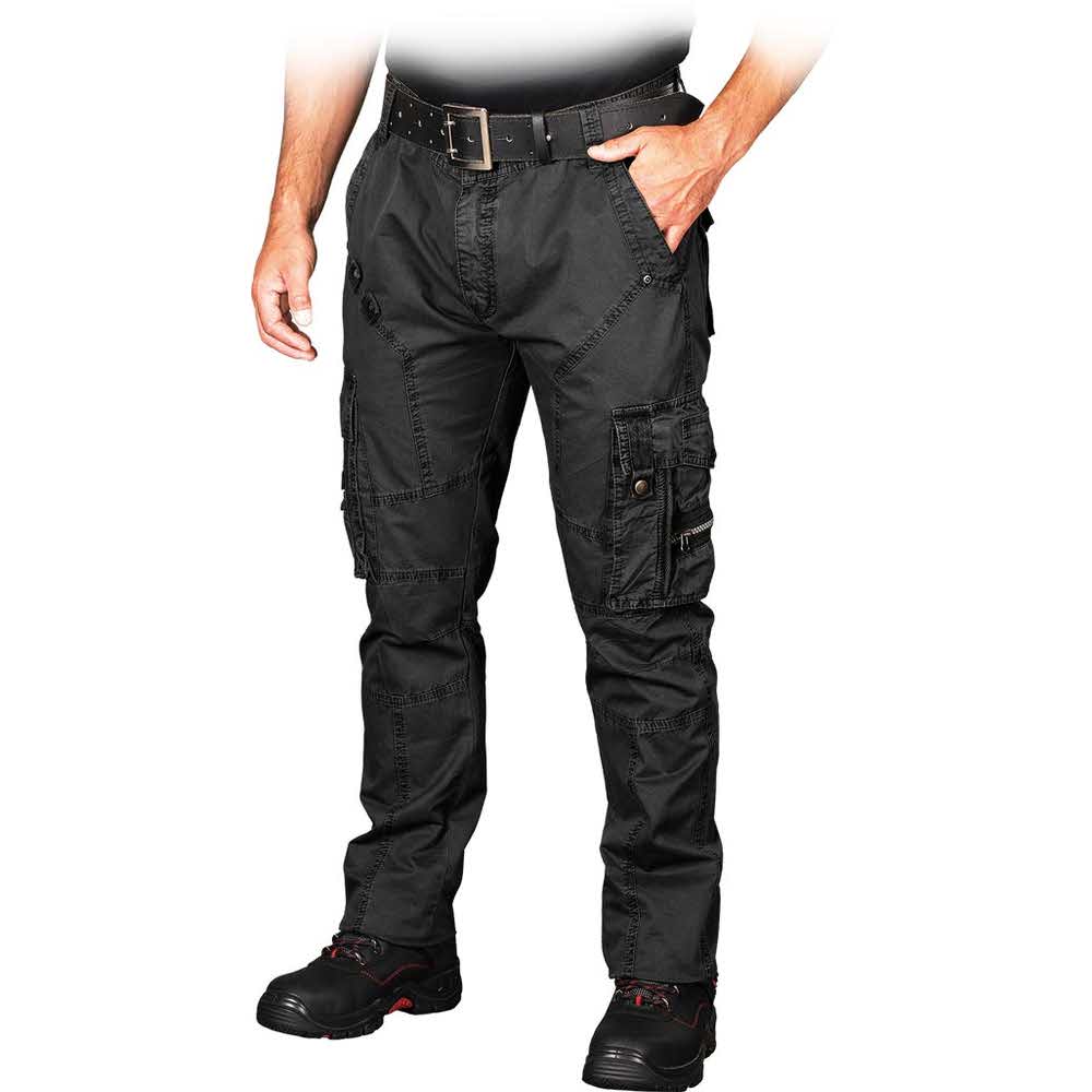 Spodnie ochronne typu bojówki. – 100% bawełna – gramatura 180 g/m2 – zapisane na guzik oraz zamek błyskawiczny – dwie kieszenie z tyłu na napy i rzepy oraz dwie boczne – cztery kieszenie na nogawkach na napy oraz rzep, w tym dwie duże oraz dwie małe – nogawki lekko zwężane od kolan podkreślają modny krój – uniwersalny fason sprawia, że znajdują zastosowanie zarówno w pracy jak i na co dzień