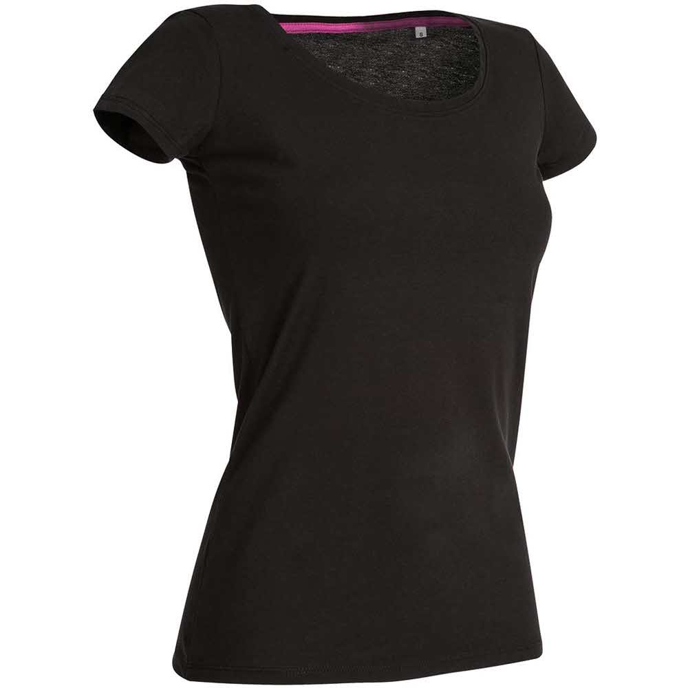 T-shirt damski ST9700. – 95% bawełny czesanej ring-spun, 5% elastanu GYH: 82% bawełny, 14% viscose, 4% elastanu – gramatura 170 g/m2 – szwy boczne – kontrastująca taśma przy szyi – dekolt z wąskim ściągaczem – modny szeroki dekolt – wąsko obrębione rękawy – wzmocniony szew na ramieniu – single jersey