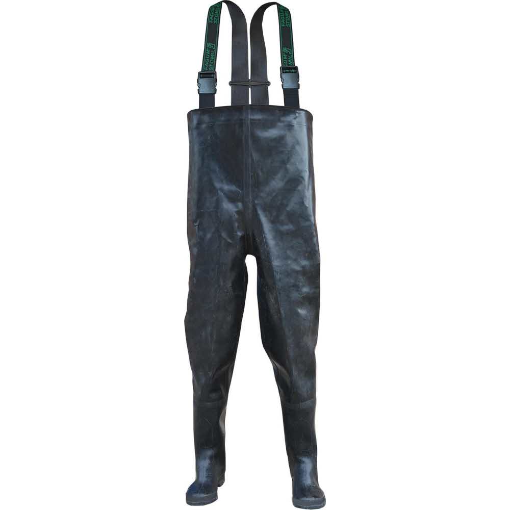 Spodniobuty. – wykonane z gumy – wodoodporne i wiatroszczelne – jedna kieszeń wewnętrzna – elastyczne szelki – długość sztywnej części cholewki ok. 36 cm – idealne dla rybaków oraz wędkarzy – kategoria OB – kalosz spełniają wymagania normy EN20347