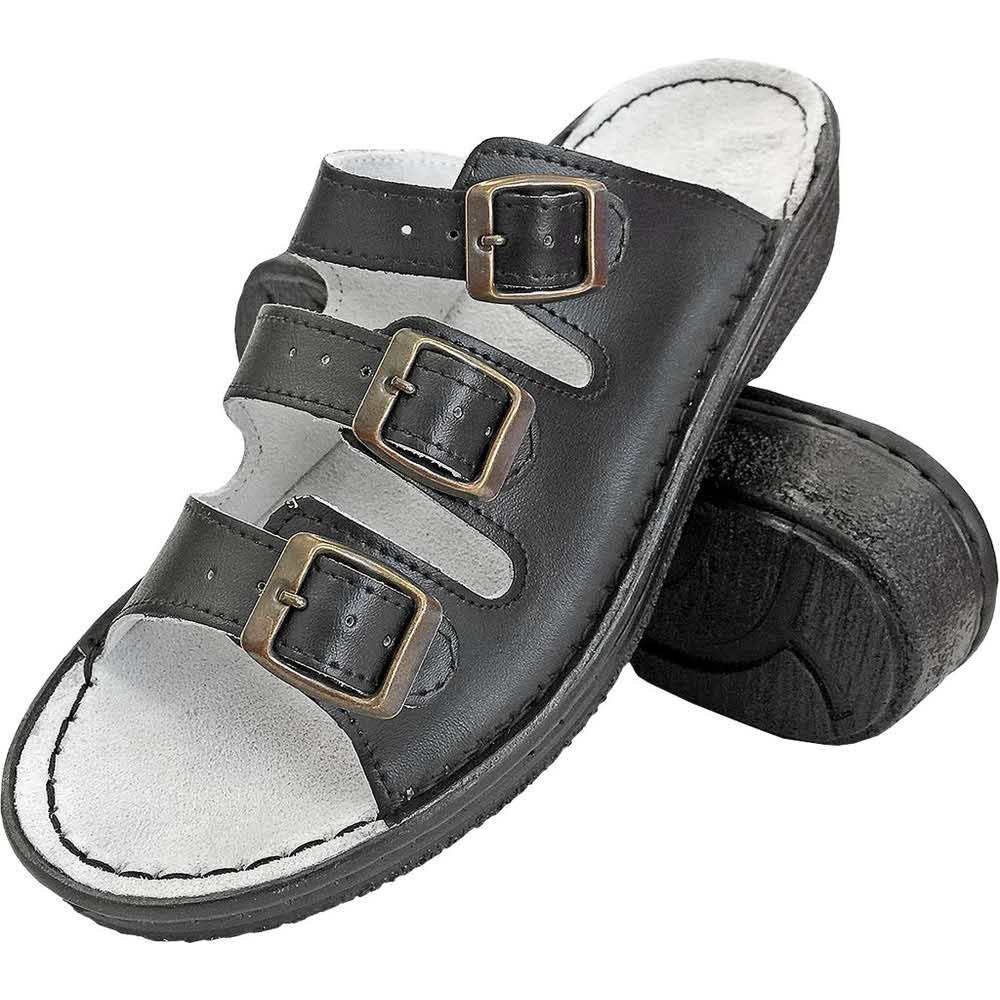 Obuwie ortopedyczne. – wykonane z najwyższej jakości materiałów oraz przy użyciu najnowocześniejszej technologii – wyściółka skórzana profilowana, szyta – trzy paski z możliwością regulacji tęgości – podeszwa wykonana z poliuretanu wyposażona w bieżnik antypoślizgowy oraz pełny profil ortopedyczny, który zapewnia dobra przyczepności wygodę w codziennym użytkowaniu oraz absorbcję energii w części piętowej – podparcie łuku podłużnego stopy i pelota metatarsalna zmieniają korzystnie układ nacisków na podeszwowej stronie stopy, co zapewnia komfort przez wiele godzin użytkowania obuwia – zaprojektowane dla użytkowników profesjonalnych np. personelu służby zdrowia, osób wykonujących pracę stojąco -chodzącą, pracowników chłodni, rzeźni, ubojni, przemysłu elektronicznego i innych – charakteryzują się trwałością oraz estetyką wykonania