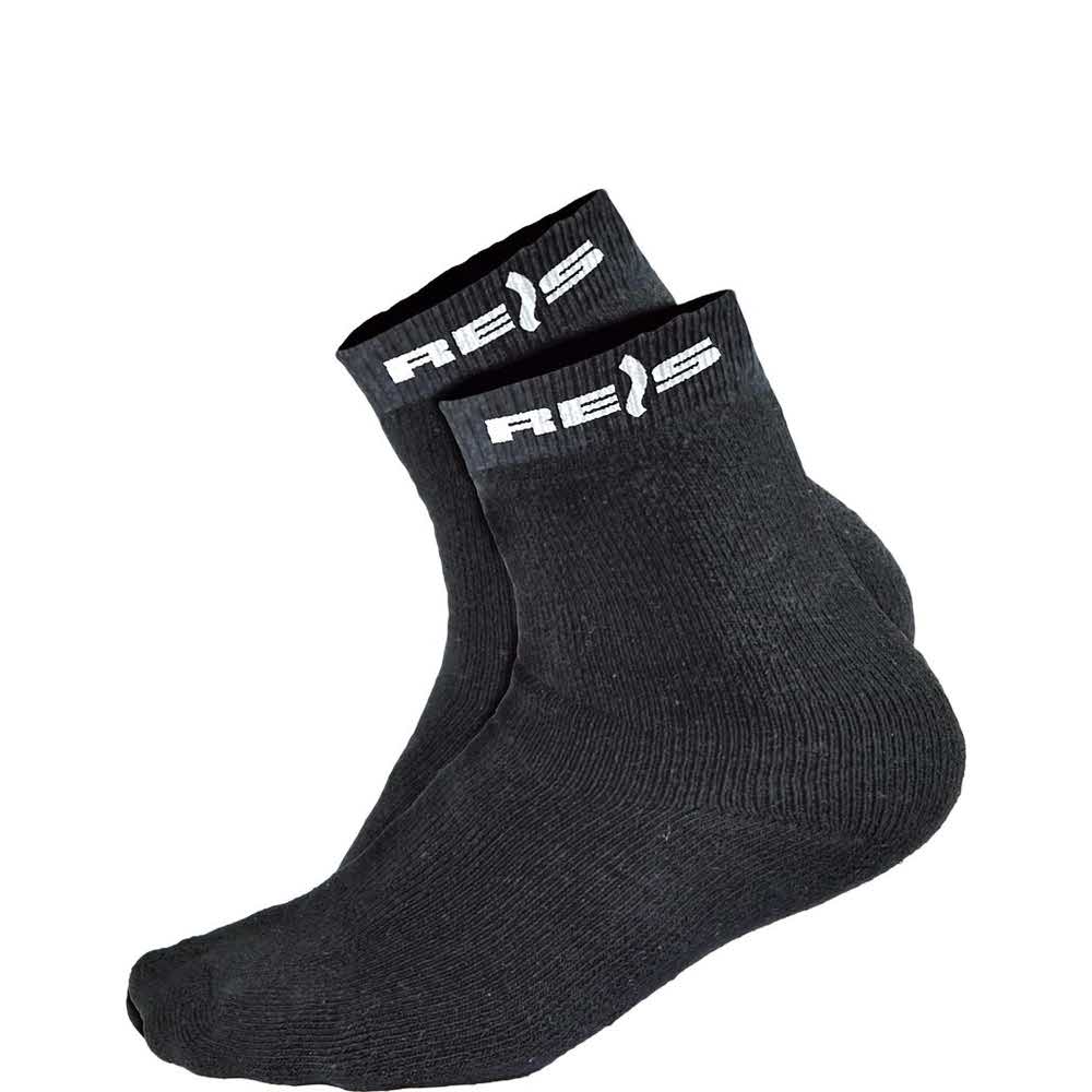 Skarpety do pracy i codziennego użytku. – 50% bawełna, 45% poliester, 5% elastyna – w górnej części skarpet logo REIS – dostępne w kolorze czarnym – umieszczone na małym wieszaku, który umożliwia wygodną prezentację na wystawie – najmniejsza jednostka sprzedaży 3 pary