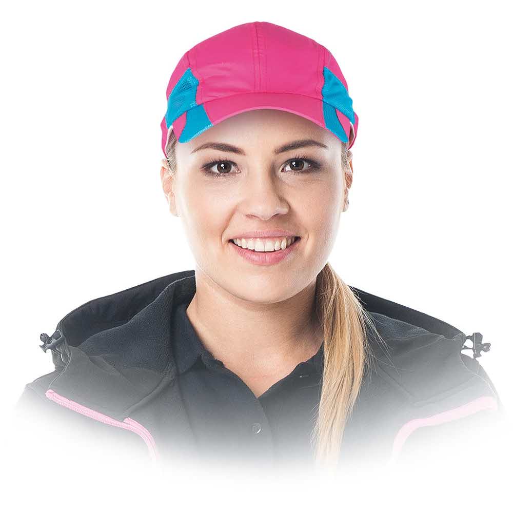 Czapka z daszkiem. – 100% poliester – gramatura 260 g/m2 – usztywniany daszek – zapinana na zatrzask z możliwością regulacji – wstawki wykonane z siatki zwiększają komfort użytkowania – idealna na upalne dni