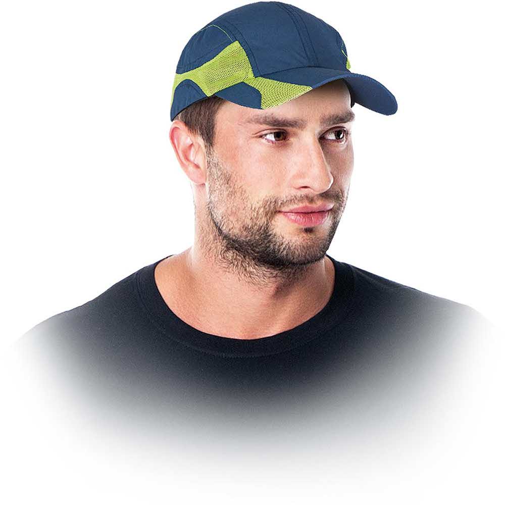 Czapka z daszkiem. – 100% poliester – gramatura 260 g/m2 – usztywniany daszek – zapinana na zatrzask z możliwością regulacji – wstawki wykonane z siatki zwiększają komfort użytkowania – idealna na upalne dni