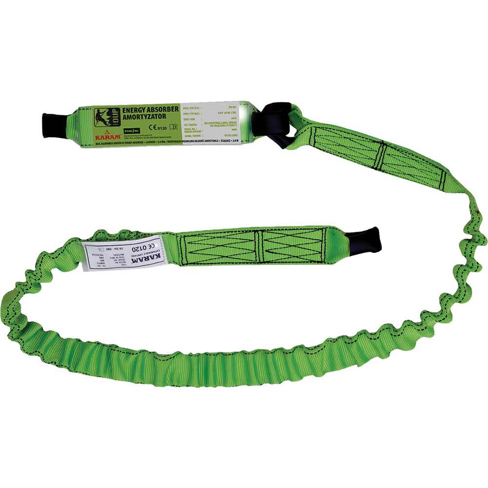 Amortyzator bezpieczeństwa. – długość: 2 m – elastyczny ściągacz taśmowy z pochłaniaczem energii – taśma szerokości 44 ±1 mm wykonana z poliestru – spełnia wymagania normy EN355