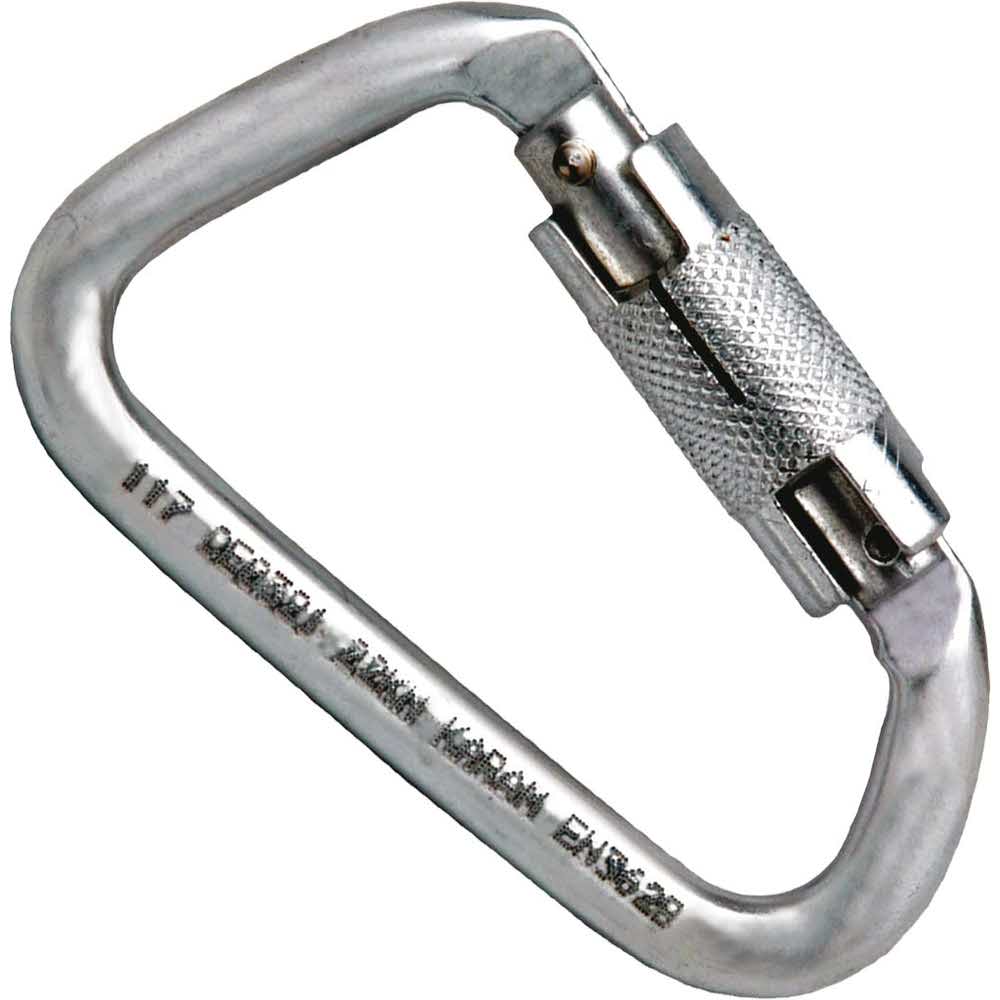 Łącznik aluminiowy z automatyczną blokadą i zamknięciem. – otwarcie 22.0 mm – wykonany z okrągłych prętów o średnicy 11 mm – łącznik z automatyczną blokadą i zamknięciem – blokada z zastosowaniem nakrętki ćwierćobrotowej – wytrzymałość systemu większa niż 23 kN – spełnia wymagania normy EN362