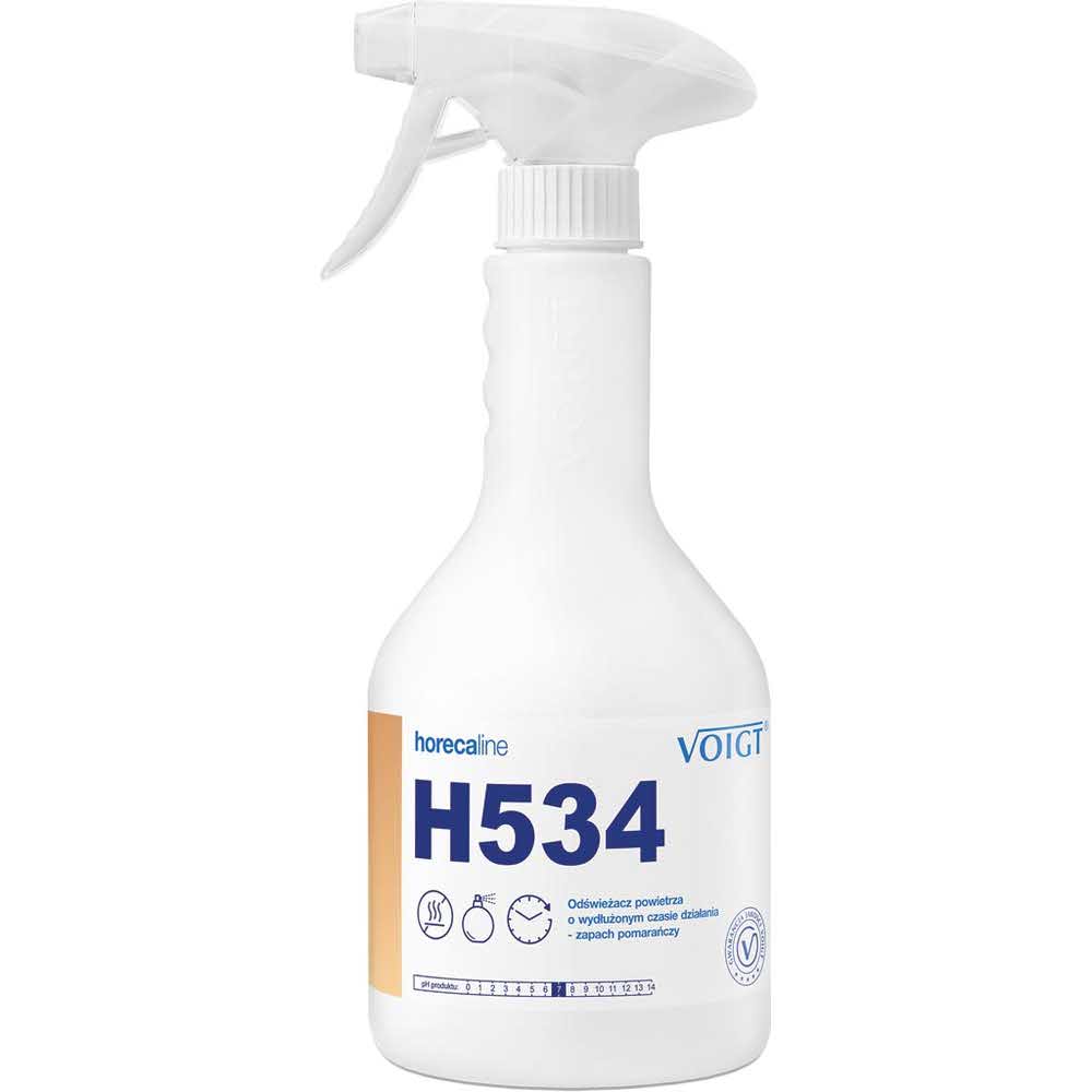 Niezwykle efektywny środek eliminujący nieprzyjemne zapachy H 534. – zapach pomarańczowy – dzięki rewolucyjnej formule, składniki zawarte w preparacie łączą się z zapachowymi molekułami i neutralizują ich działanie – zapach szybko i skutecznie odświeża powietrze w pokojach, salach konferencyjnych, korytarzach, holach, toaletach i palarniach – jego ogromnym atutem jest znakomita wydajność – jedno opakowanie wystarczy na aż 650 pojedynczych aplikacji – zapach świetnie sprawdza się również w pomieszczeniach zawilgoconych – pH: 6/*/8 – opakowanie 0,6 l
