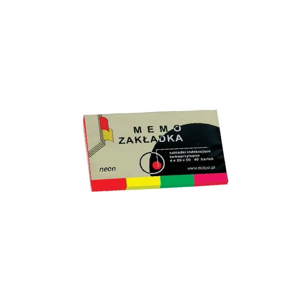 Zakładki Indeksujące Samoprzylepne 20 X 50 Mm 4 Kol X 40 Kart Neonowy Dalpo