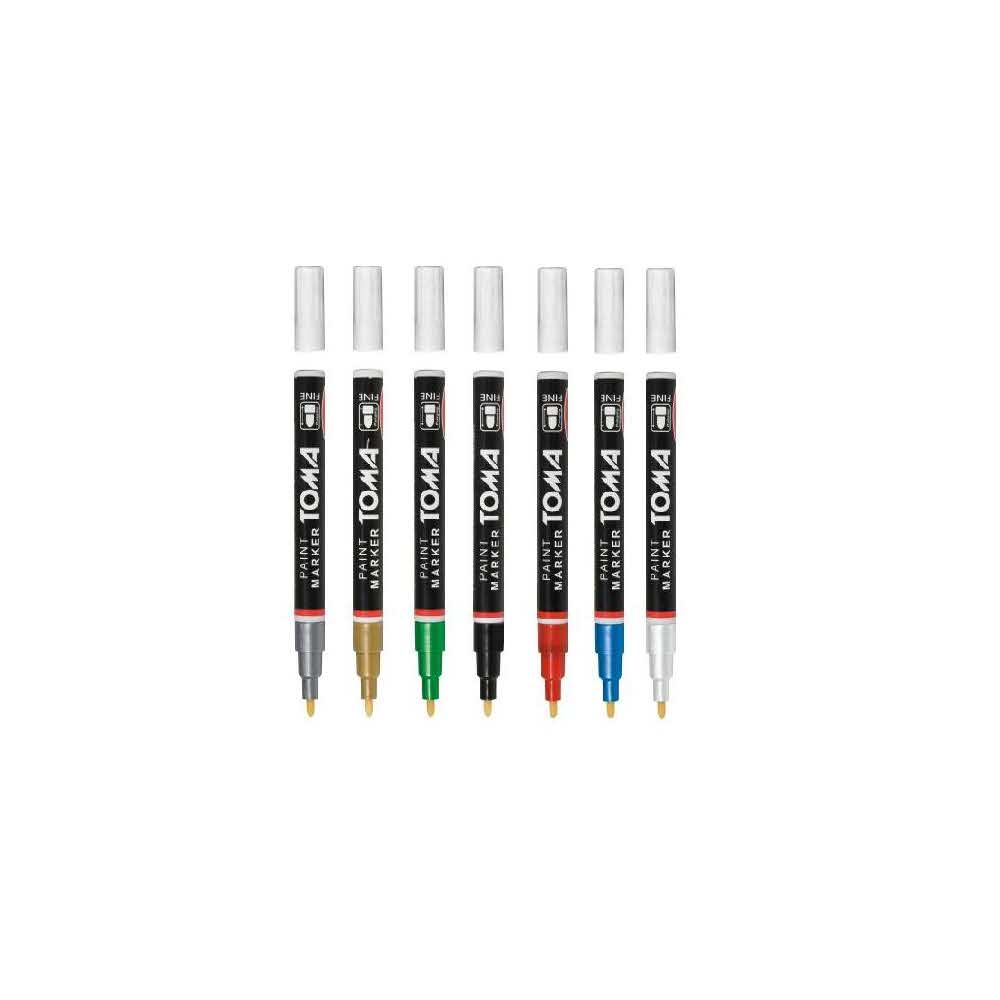 Marker olejowy, fibrową końcówką 1,5 mm. Szybkoschnący, wodoodporny tusz olejny, niezmywalny, do zastosowania na wszystkich powierzchniach, do opisywania różnych przedmiotów, nawet w trudnych warunkach warsztatowych, zawartość około 6 ml. Producent: TOMA Model: TO-441 Produkt: Marker