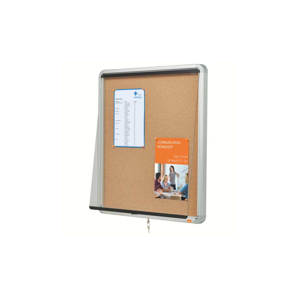 Jeżeli Twoje ogłoszenia wymagają zabezpieczenia, gabloty te będą idealnym rozwiązaniem. Przeznaczone do użytku zarówno w pomieszczeniach, jak i na zewnątrz. Wyposażone w szklany front o grubości 4 mm i zamek z kluczem – zapewniają bezpieczeństwo umieszczonych w nich informacji. Szklana gablota wewnętrzna. Korkowa. 6 x A4. Bezpieczna i niezawodna – szklana korkowa gablota wewnętrzna Nobo, 6 x A4 Nowoczesne wzornictwo, chroni i zabezpiecza zamieszczone w gablocie informacje Pewne zabezpieczenie – mocna aluminiowa rama ze szklanymi zamykanymi drzwiami o grubości 4 mm W różnych konfiguracjach – wytrzymała gablota korkowa do użytku ze szpilkami lub biała gablota ze stali magnetycznej do użytku z magnesami i markerami do ścierania na sucho 1-centymetrowe obramowanie wokół każdej strony A4 pozwala naprawdę wyróżnić dokumenty Łatwa w montażu – unikalny uchwyt ułatwiający zawieszenie Głębokość użytkowa: 16 mm dla pinezek / magnesów 3-letnia gwarancja Nowoczesne wzornictwo, chroni i zabezpiecza zamieszczone w gablocie informacje Pewne zabezpieczenie – mocna aluminiowa rama ze szklanymi zamykanymi drzwiami o grubości 4 mm W różnych konfiguracjach – wytrzymała gablota korkowa do użytku ze szpilkami lub biała gablota ze stali magnetycznej do użytku z magnesami i markerami do ścierania na sucho 1-centymetrowe obramowanie wokół każdej strony A4 pozwala naprawdę wyróżnić dokumenty Łatwa w montażu – unikalny uchwyt ułatwiający zawieszenie Głębokość użytkowa: 16 mm dla pinezek / magnesów 3-letnia gwarancja