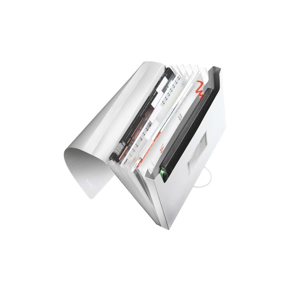 Wyjątkowa, najwyższej jakości teczka z przegródkami, w nowoczesnym designie ze szczotkowanym wykończeniem, w intrygujących kolorach: satynowa czerń, arktyczna biel, rubinowa czerwień, tytanowy błękit, pistacjowa zieleń. Idealna do porządkowania i przechowywania dokumentów i projektów. Stylowa, w intrygujących kolorach. Posiada przestronne, poszerzane przegródki. Mieści 250 kartek. A4. 6 przestronnych poszerzanych przegródek z indeksami dla łatwej identyfikacji zawartości Przednia przegródka służy do przechowywania różnych przedmiotów lub notatnika Ozdobne zamknięcie do zabezpieczenia dokumentów podczas przenoszenia Można w niej umieścić dokumenty A4, notatniki Leitz Style lub foldery CombiFile Mieści 250 kartek A4 (80 gsm) 6 przestronnych poszerzanych przegródek z indeksami dla łatwej identyfikacji zawartości Przednia przegródka służy do przechowywania różnych przedmiotów lub notatnika Ozdobne zamknięcie do zabezpieczenia dokumentów podczas przenoszenia Można w niej umieścić dokumenty A4, notatniki Leitz Style lub foldery CombiFile Mieści 250 kartek A4 (80 gsm)