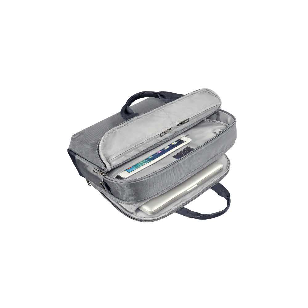 Wysokiej jakości lekka torba z dwiema przegródkami i kieszenią z przodu. Wyróżniające się, efektowne wzornictwo, z wygodnym zamkiem błyskawicznym i eleganckimi metalowymi zapięciami. Miejsce na urządzenia mobilne, laptop 13,3 i dokumenty A4. Posiada usztywnione skórzane rączki, regulowany pas na ramię oraz uchwyt mocujący do wózków lotniskowych. Zmieści wszystkie Twoje urządzenia i dokumenty A4, dodatkowo posiada rączki, pas na ramię i uchwyt mocujący do wózków lotniskowych. Lekka, wytrzymała torba z poliestru do codziennego użytku Przednia kieszeń pozwala na szybki dostęp do Twojego smartfona, paszportu, długopisu czy wizytówek 18 kieszeni, w tym przednia kieszeń umożliwiająca szybki dostęp do mini tabletu lub czytnika e-booków W komplecie ściereczka do czyszczenia ekranu i uchwyt na klucze Oddzielna, odpinana kieszeń na ładowarki i kable Wygodne kieszenie z siatki na kable i inne akcesoria Usztywniana kieszeń na tablet lub ultrabook z podszewką z weluru chroniącą powierzchnie i ekrany urządzeń Ukryta tylna kieszeń na telefon, umożliwiająca połączenia przez słuchawkę Lekka, wytrzymała torba z poliestru do codziennego użytku Przednia kieszeń pozwala na szybki dostęp do Twojego smartfona, paszportu, długopisu czy wizytówek 18 kieszeni, w tym przednia kieszeń umożliwiająca szybki dostęp do mini tabletu lub czytnika e-booków W komplecie ściereczka do czyszczenia ekranu i uchwyt na klucze Oddzielna, odpinana kieszeń na ładowarki i kable Wygodne kieszenie z siatki na kable i inne akcesoria Usztywniana kieszeń na tablet lub ultrabook z podszewką z weluru chroniącą powierzchnie i ekrany urządzeń Ukryta tylna kieszeń na telefon, umożliwiająca połączenia przez słuchawkę