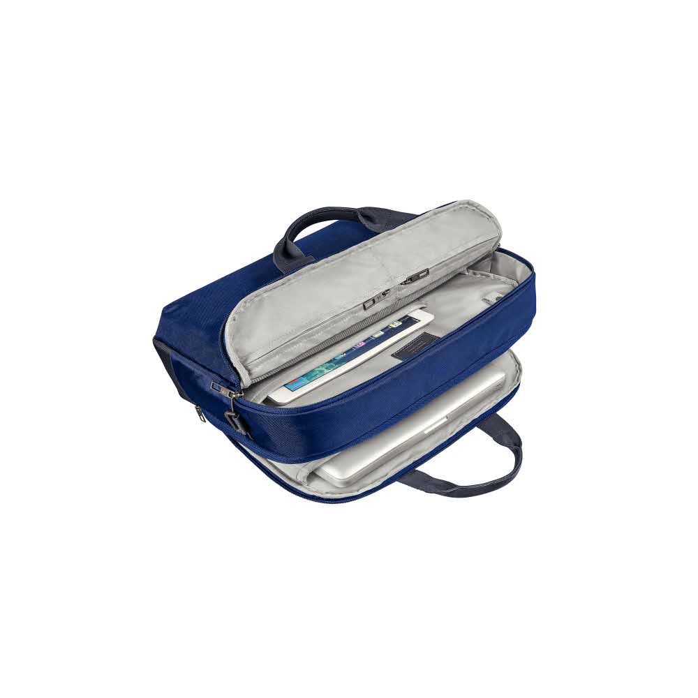 Wysokiej jakości lekka torba z dwiema przegródkami i kieszenią z przodu. Wyróżniające się, efektowne wzornictwo, z wygodnym zamkiem błyskawicznym i eleganckimi metalowymi zapięciami. Miejsce na urządzenia mobilne, laptop 13,3 i dokumenty A4. Posiada usztywnione skórzane rączki, regulowany pas na ramię oraz uchwyt mocujący do wózków lotniskowych. Zmieści wszystkie Twoje urządzenia i dokumenty A4, dodatkowo posiada rączki, pas na ramię i uchwyt mocujący do wózków lotniskowych. Lekka, wytrzymała torba z poliestru do codziennego użytku Przednia kieszeń pozwala na szybki dostęp do Twojego smartfona, paszportu, długopisu czy wizytówek 18 kieszeni, w tym przednia kieszeń umożliwiająca szybki dostęp do mini tabletu lub czytnika e-booków W komplecie ściereczka do czyszczenia ekranu i uchwyt na klucze Oddzielna, odpinana kieszeń na ładowarki i kable Wygodne kieszenie z siatki na kable i inne akcesoria Usztywniana kieszeń na tablet lub ultrabook z podszewką z weluru chroniącą powierzchnie i ekrany urządzeń Ukryta tylna kieszeń na telefon, umożliwiająca połączenia przez słuchawkę Lekka, wytrzymała torba z poliestru do codziennego użytku Przednia kieszeń pozwala na szybki dostęp do Twojego smartfona, paszportu, długopisu czy wizytówek 18 kieszeni, w tym przednia kieszeń umożliwiająca szybki dostęp do mini tabletu lub czytnika e-booków W komplecie ściereczka do czyszczenia ekranu i uchwyt na klucze Oddzielna, odpinana kieszeń na ładowarki i kable Wygodne kieszenie z siatki na kable i inne akcesoria Usztywniana kieszeń na tablet lub ultrabook z podszewką z weluru chroniącą powierzchnie i ekrany urządzeń Ukryta tylna kieszeń na telefon, umożliwiająca połączenia przez słuchawkę