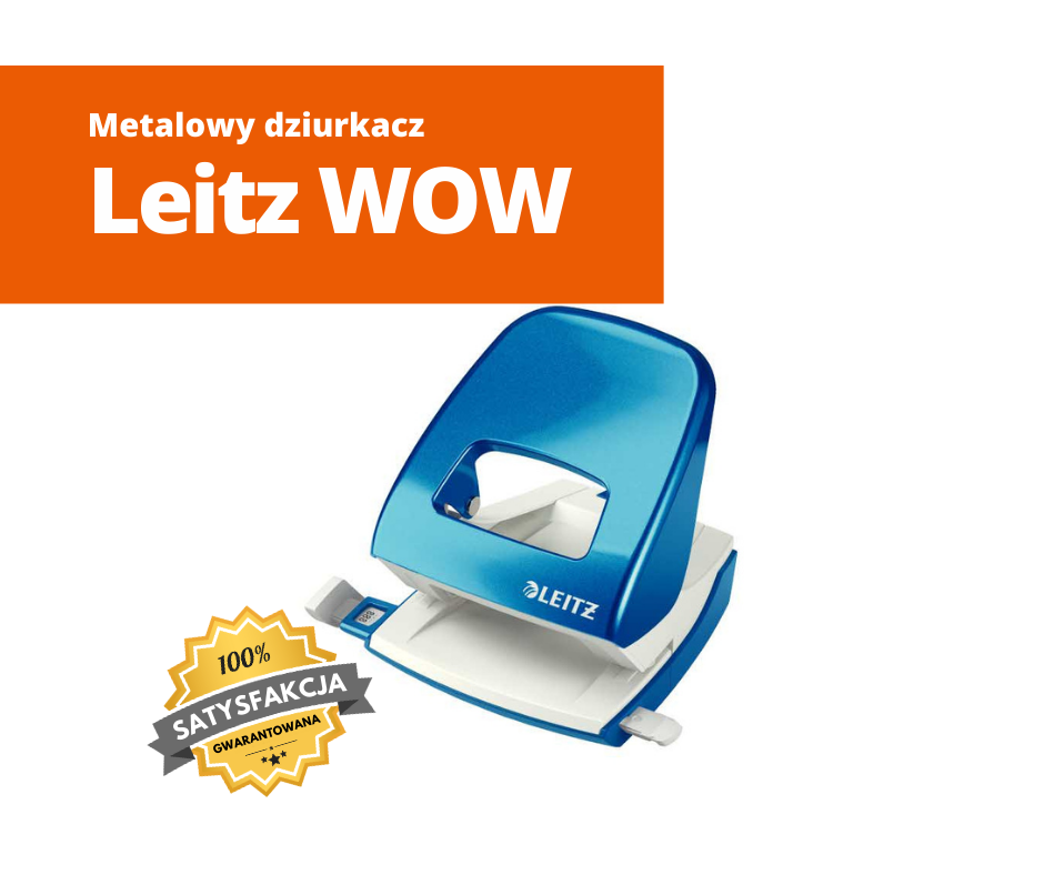 Leitz Dziurkacz duży metalowy, niebieski, 10 lat gwarancji, 30 kartek, WOW 50081036