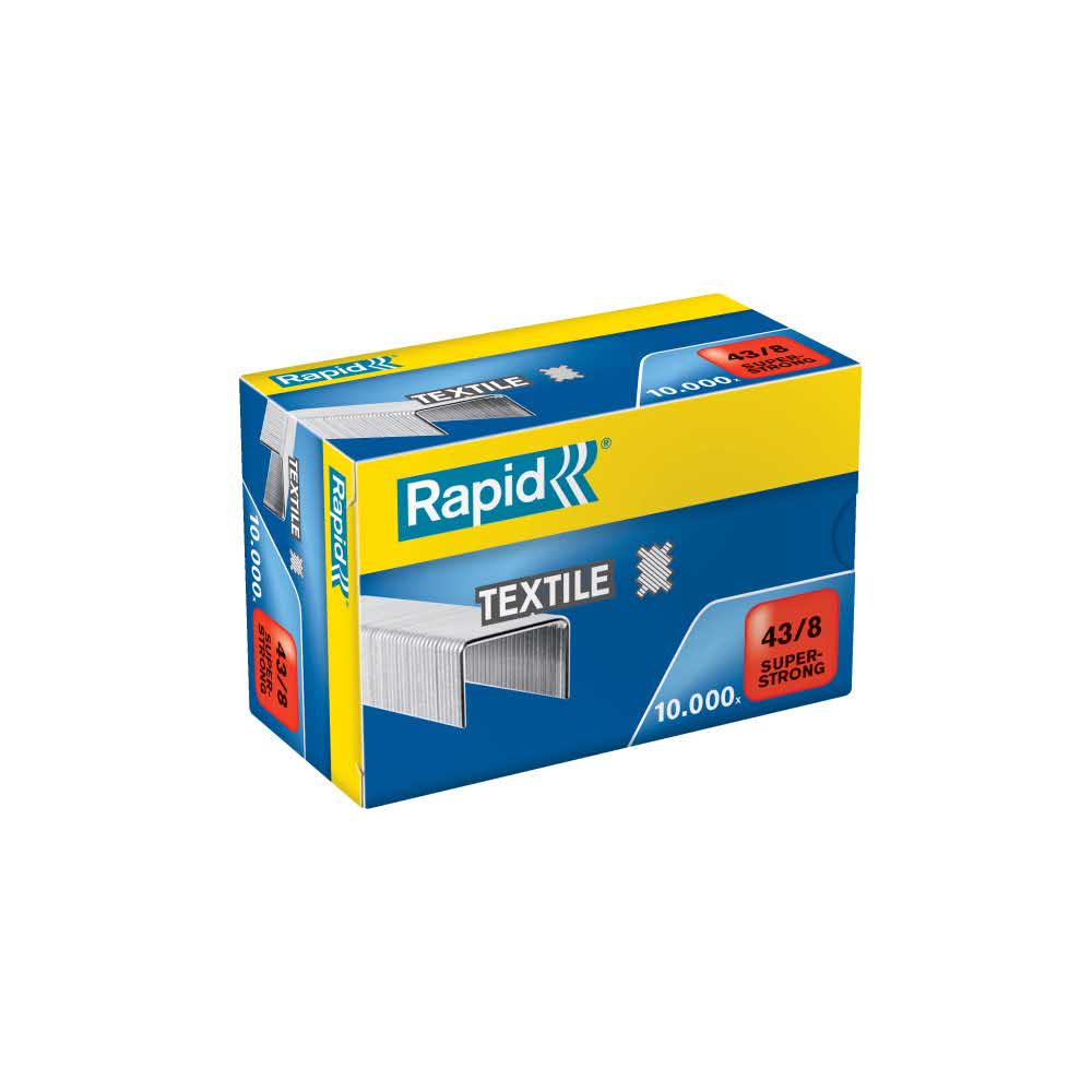 Zszywki wykonane z mocnych materiałów o wysokiej jakości. Zaprojektowane specjalnie do pracy z tkaninami. Do zszywacza K1 Textile. Opakowanie zawierające 10.000 szt. zszywek do tekstyliów 43/8 Do tkanin Specjalnie zaostrzone końcówki zszywek nie zaginają się i łatwiej zszywają dokument Mocny, galwanizowany drut dla najwyższej wydajności Do tkanin Specjalnie zaostrzone końcówki zszywek nie zaginają się i łatwiej zszywają dokument Mocny, galwanizowany drut dla najwyższej wydajności