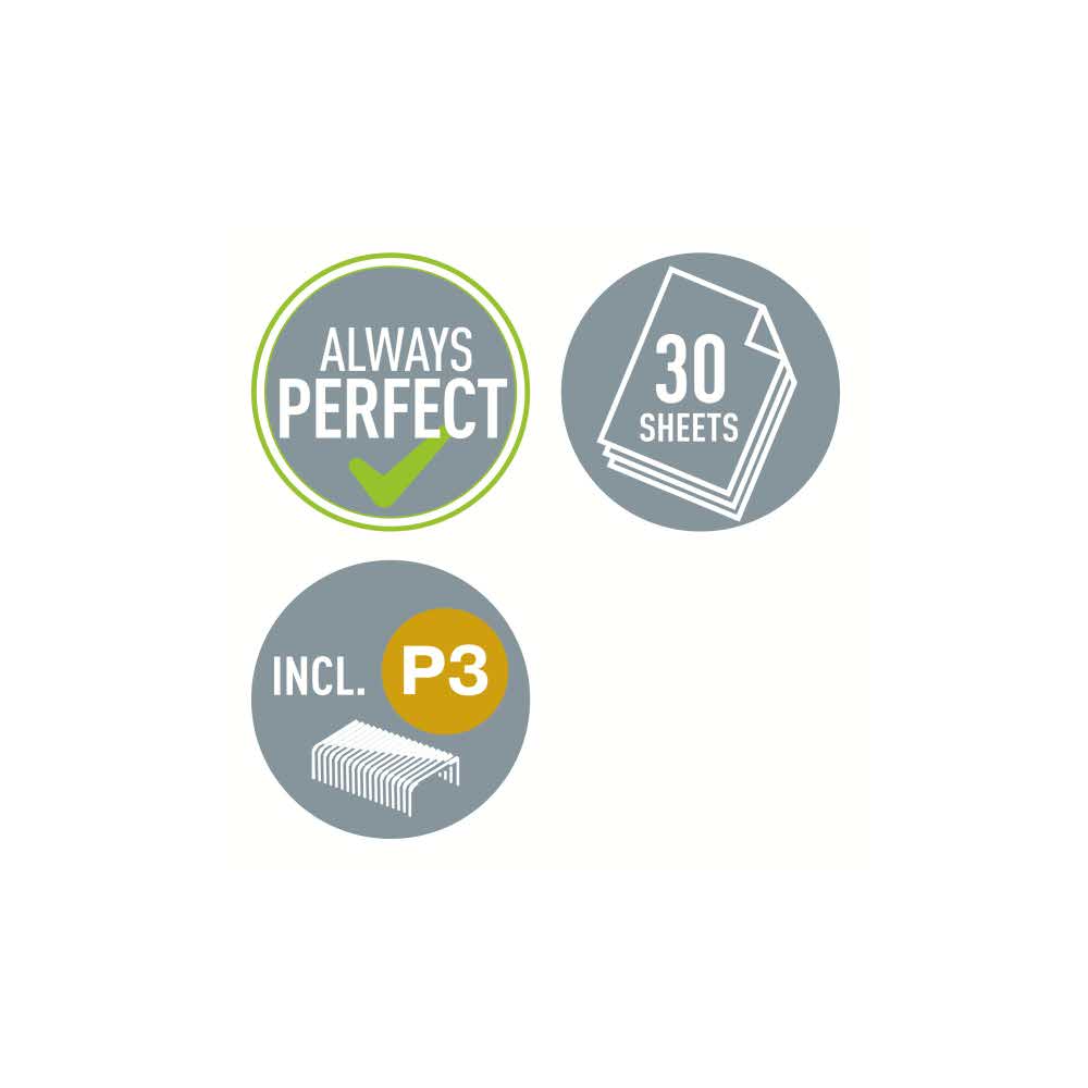 Niezawodny zszywacz do codziennego użytku biurowego. Opatentowana technologia Direct Impact i zszywki Leitz P3 (24/6, 26/6) zapewniają doskonałe zszywanie przy każdym użyciu. Zszywa do 30 kartek. Doskonała jakość zszywania dzięki technologii Direct Impact. W komplecie zszywki. Zapakowany w pudełko kartonowe. Zszywa do 30 kartek (papier 80 gsm) Łatwe, dokładne zszywanie dzięki technologii Direct Impact Poręczny zintegrowany rozszywacz Przycisk umożliwia łatwe przekręcenie stopki obrotowej i zmianę zszywania otwartego na zamknięte, a 180° otwarcie umożliwia zszywanie tapicerskie Używany ze zszywkami Leitz Power Performance P3 24/6 i 26/6, opakowanie zszywek w komplecie Stosowanie zszywek Leitz, które dzięki kontrolom jakości zawsze mają ostre krawędzie, zapewnia perfekcyjne zszywanie 3-letnia gwarancja przy używaniu zszywek Leitz Zszywa do 30 kartek (papier 80 gsm) Łatwe, dokładne zszywanie dzięki technologii Direct Impact Poręczny zintegrowany rozszywacz Przycisk umożliwia łatwe przekręcenie stopki obrotowej i zmianę zszywania otwartego na zamknięte, a 180° otwarcie umożliwia zszywanie tapicerskie Używany ze zszywkami Leitz Power Performance P3 24/6 i 26/6, opakowanie zszywek w komplecie Stosowanie zszywek Leitz, które dzięki kontrolom jakości zawsze mają ostre krawędzie, zapewnia perfekcyjne zszywanie 3-letnia gwarancja przy używaniu zszywek Leitz