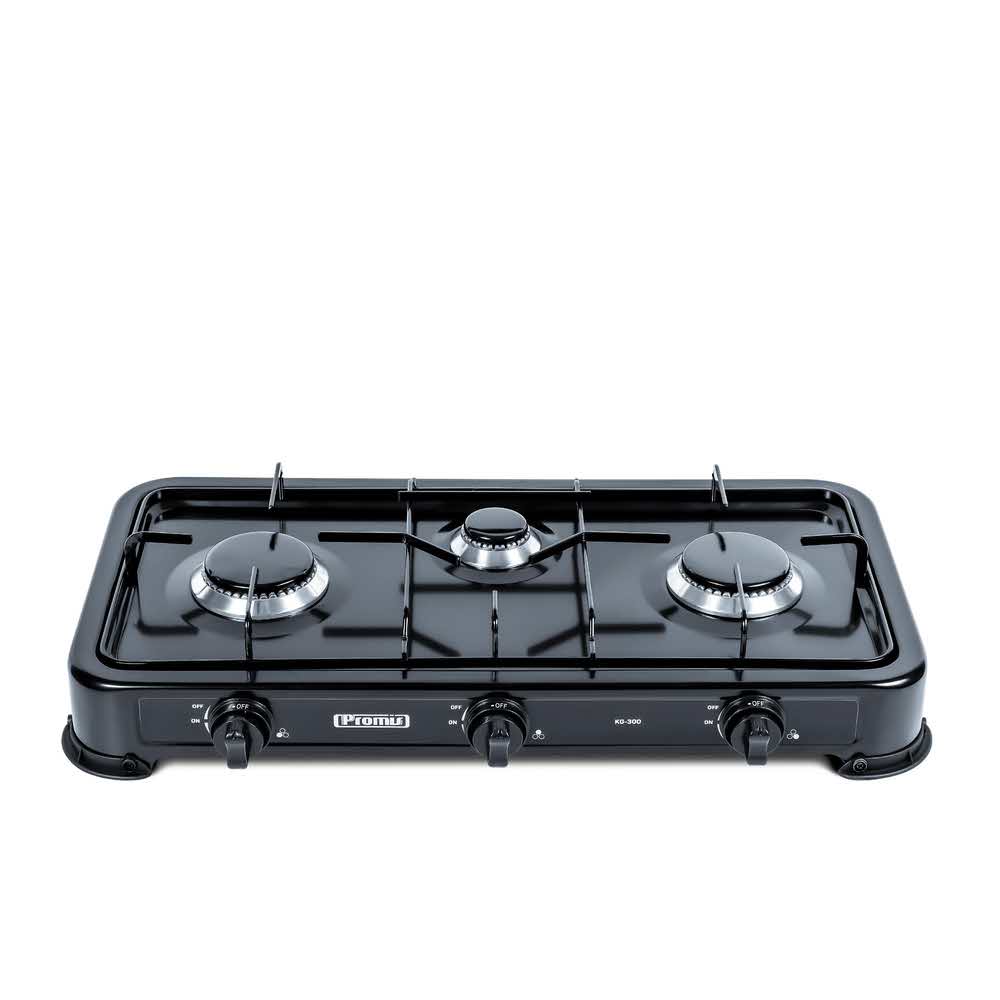 Promis Kuchenka Gazowa 3 Palnikowa Czarna Kg300c. Zestaw nie obejmuje węża do gazu oraz reduktora do butli.