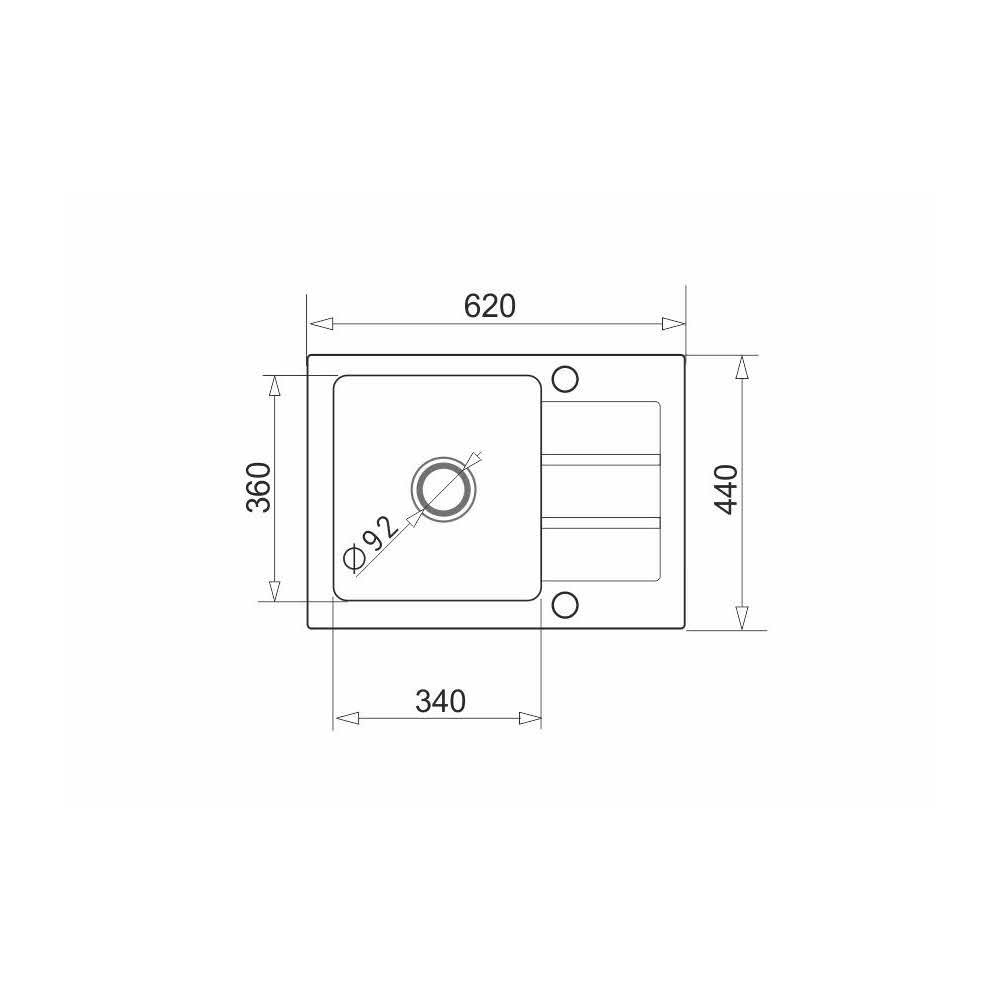 Zlewozmywak granitowy jednokomorowy z ociekaczem Maidsinks 62×44 1B 1D czarny Pyragranit, kolor czarny nakrapiany