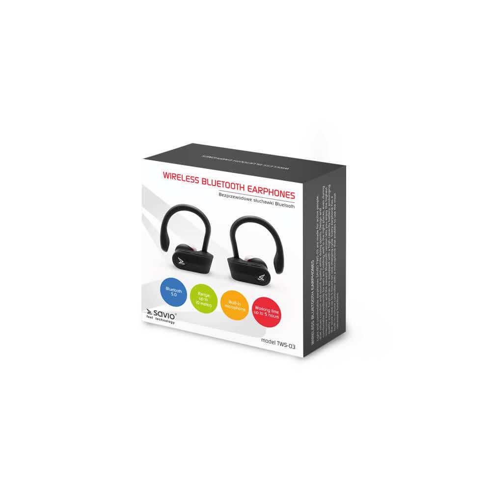 Słuchawki bezprzewodowe SAVIO TWS 03 bluetooth, bezprzewodowe Bluetooth, z wbudowanym mikrofonem, kolor czarny
