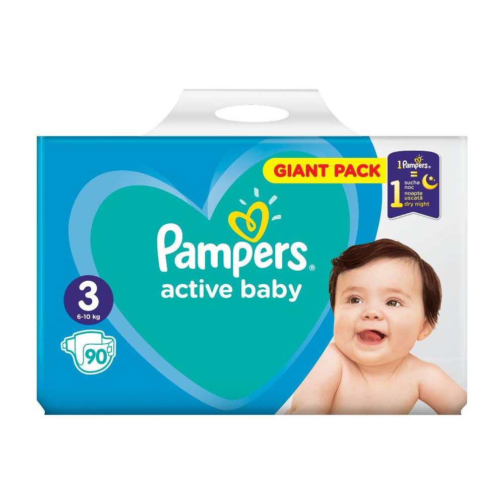Pampers Active Baby Pieluchy Rozmiar 3 6.10kg 90 Szt