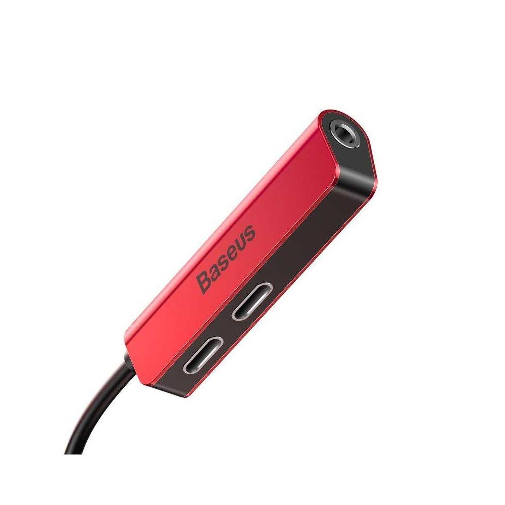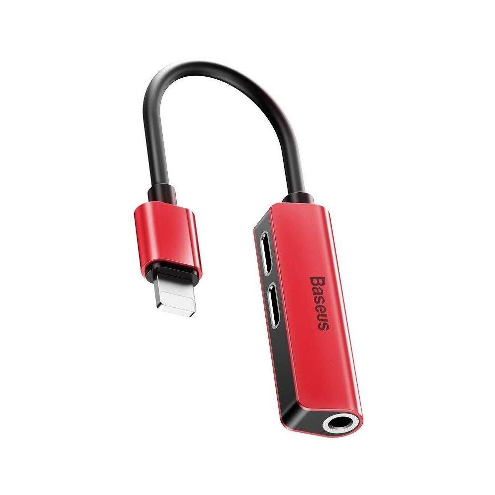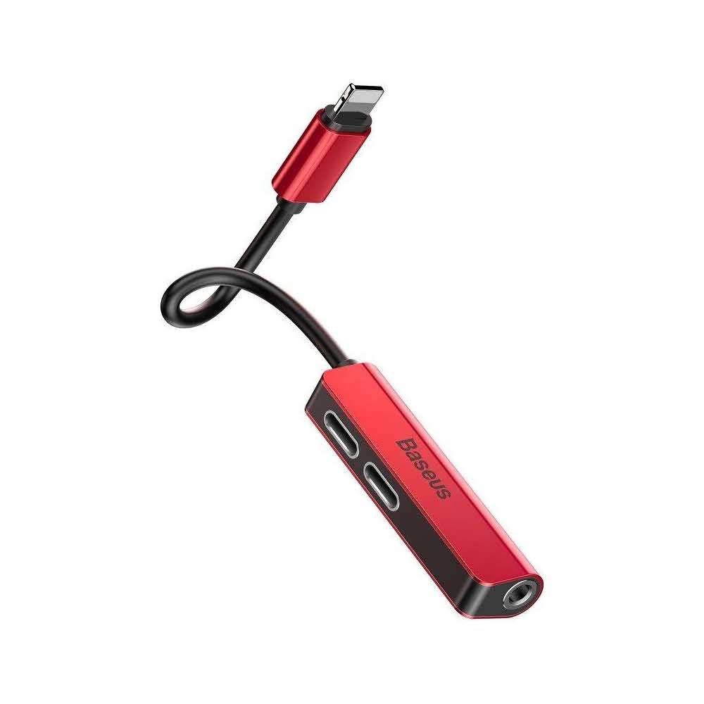Baseus Call52.91 Adapter Audio L52 Lightning Do Mini Jack 35mm I 2x Lightning Czerwony