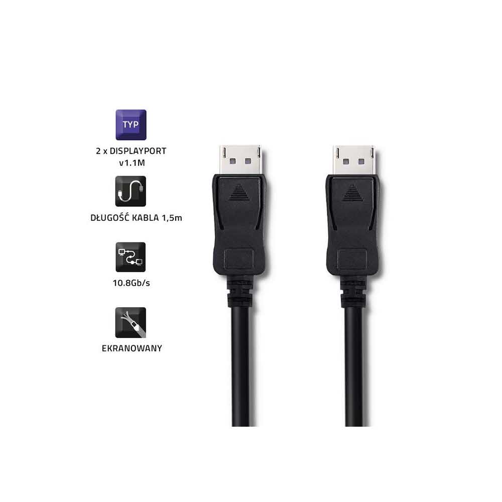 Kabel Qoltec 50456 Displayport M Displayport M 1.5m Kolor Czarny