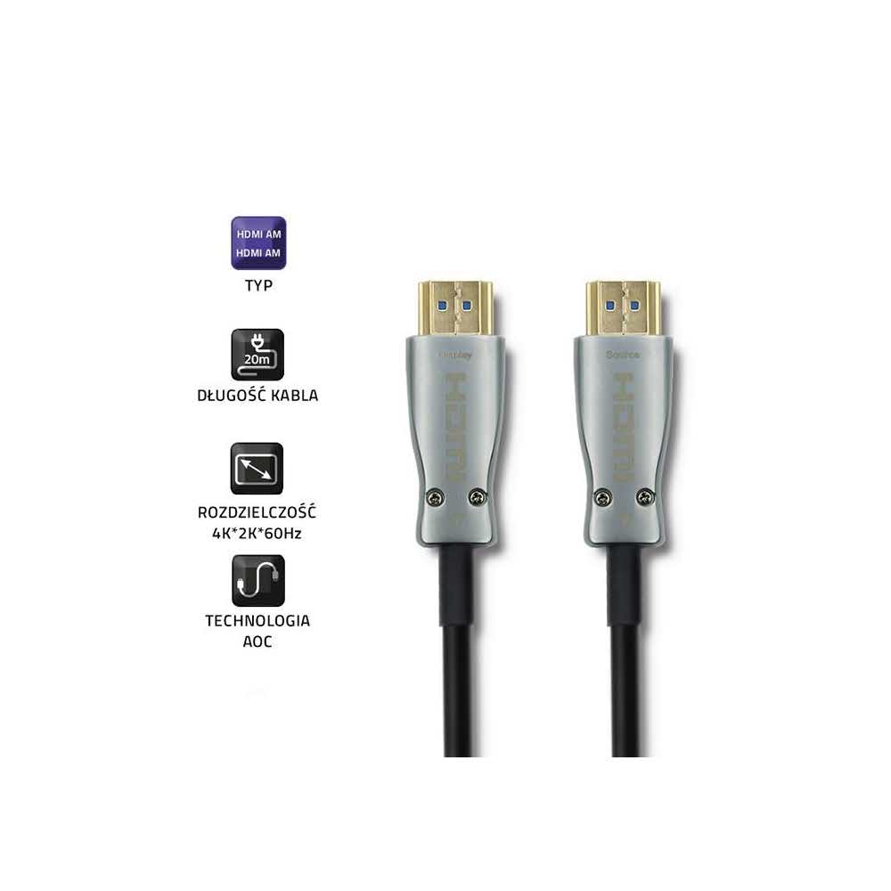 QOLTEC KABEL HDMI V2.0 A MĘSKI A MĘSKI AOC 20M