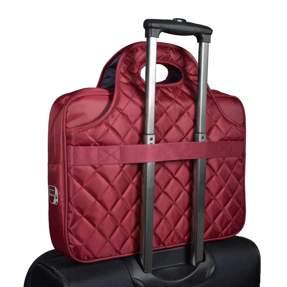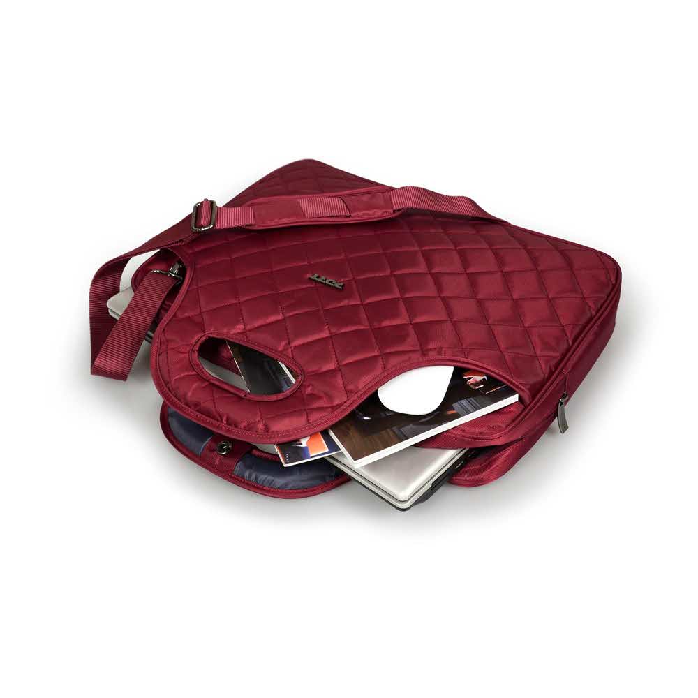 Elegancka, pikowana damska torba na tablet lub laptopa 15,6’’ w wyrafinowanym karminowym kolorze. Idealnie nadaje się na co dzień oraz podczas podróży. Posiada odpinany pasek na ramię oraz miękki i wygodny uchwyt. Wewnętrzna wzmocniona pianką kieszeń doskonale chroni urządzenie przed uszkodzeniem.