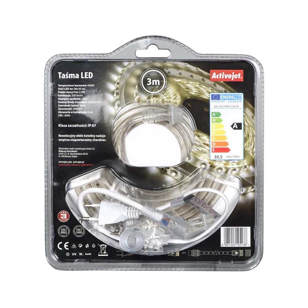 Taśma LED Activejet AJE LED STRIPE 200 lm, Neutralny, 3m, 3.5 W, IP67