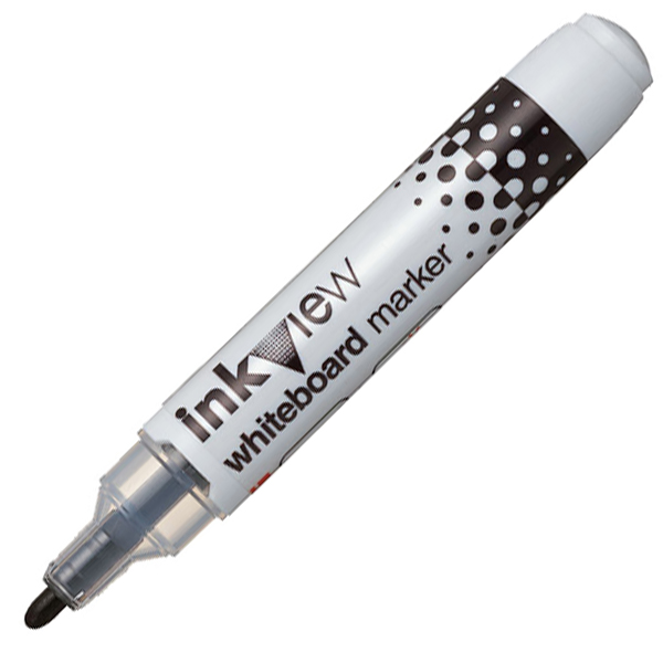 Marker do tablic suchościeralnych UNI PWB-202, jedyny na rynku marker z okienkiem do śledzenia tuszu pozostałego do pisania, pojawienie się pierwszego pęcherzyka informuje że pozostało nam tuszu na 20 m pisania, nowatorski tusz daje gładkie linie i wyraźne, intensywne kolory, tusz łatwy do usunięcia, nie pozostawia śladów na tablicy, znacząco ograniczona ilość kurzu powstającego w wyniku ścierania napisów z tablicy, okrągła końcówka, grubość linii pisma: ok. 1,8-2,2 mm