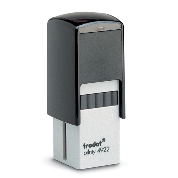Pieczątka biurowa Trodat Printy 4922. Kwadratowa, maksymalny rozmiar płytki 20×20 mm. Kolor obudowy czarny. Gwarancja 100 000 odbić. Posiada okienko okienko indeksowe oraz blokady umieszczone z boku automatu. Aby wyjąć i wymienić wkładkę tuszującą zablokuj automat i wypchnij wkładkę.