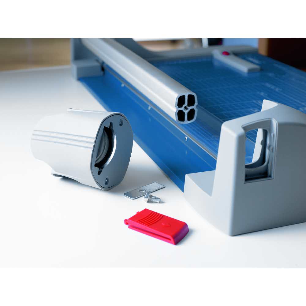 Nóż krążkowy w zamkniętej głowicy z tworzywa sztucznego. Wyposażony w nóż dolny.