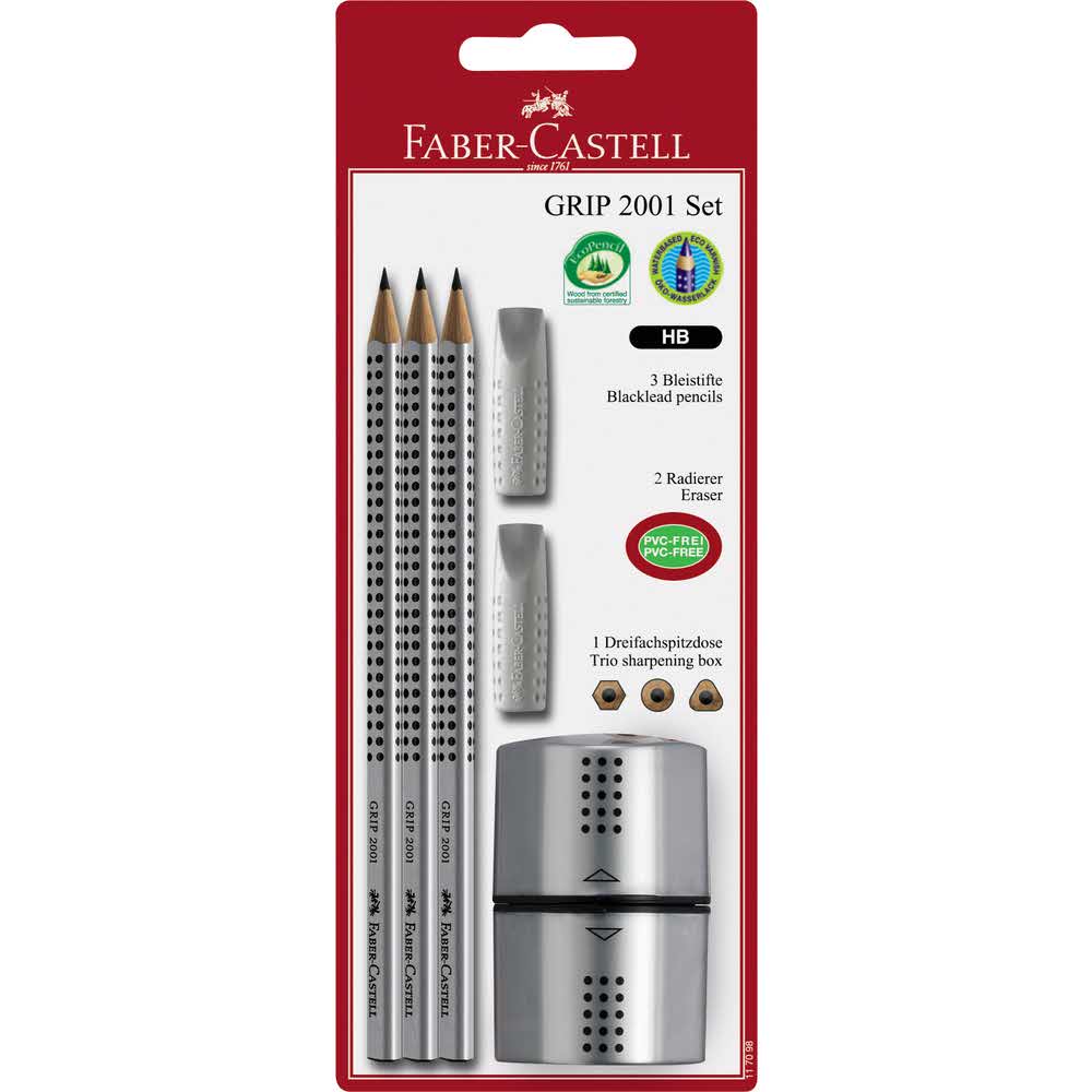 Grip 2001 Set Srebrny 3x Ołówek Temperówka 2 X Gumka Nakładka Blister Faber Castell