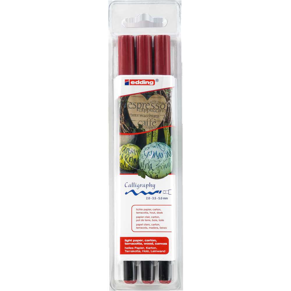 Pisaki Edding Do Kaligrafii Etui 3 Sztczerwone Końcówki 2.35 I 5mm