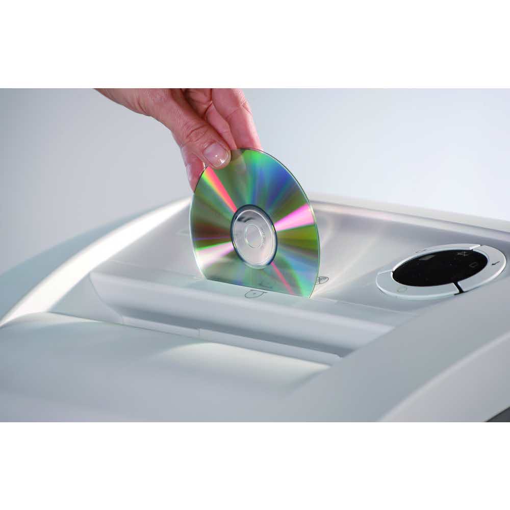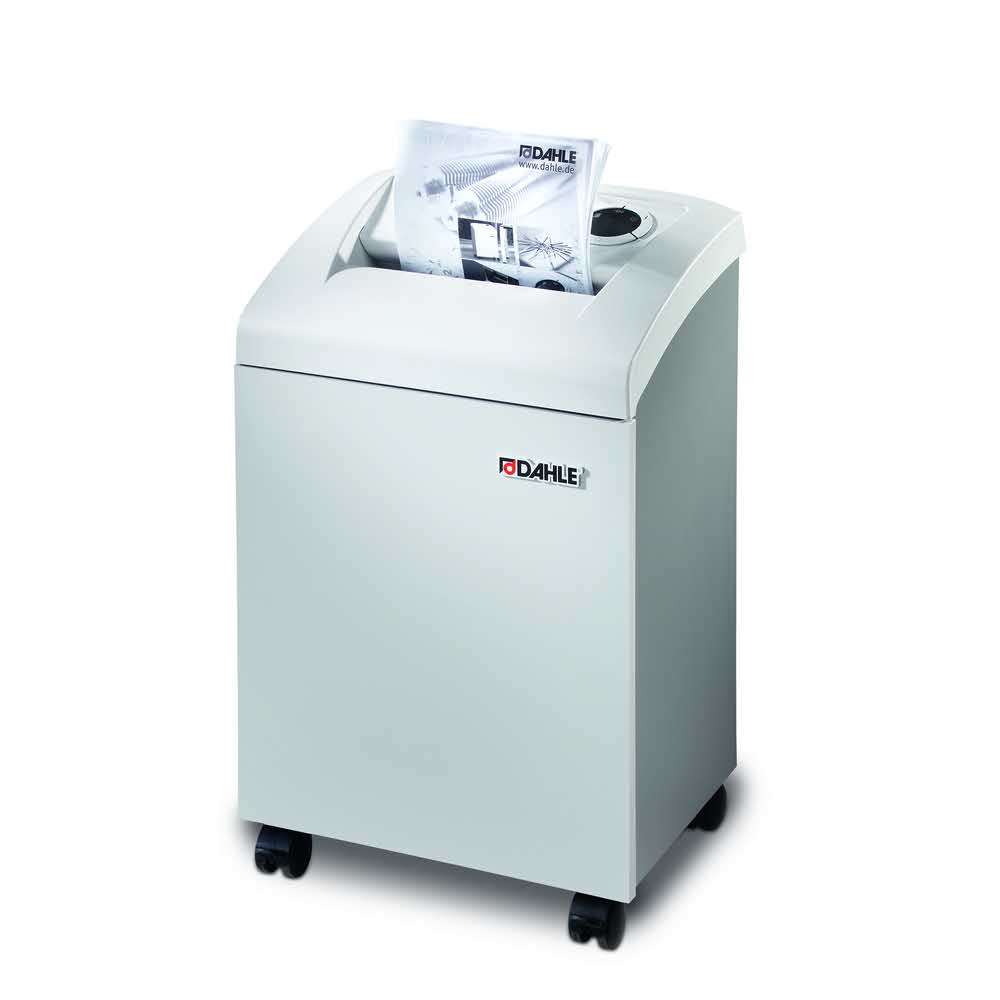 Posiada monolityczne wałki tnące wykonane z twardej stali, odporne na zszywki i spinacze biurowe.
