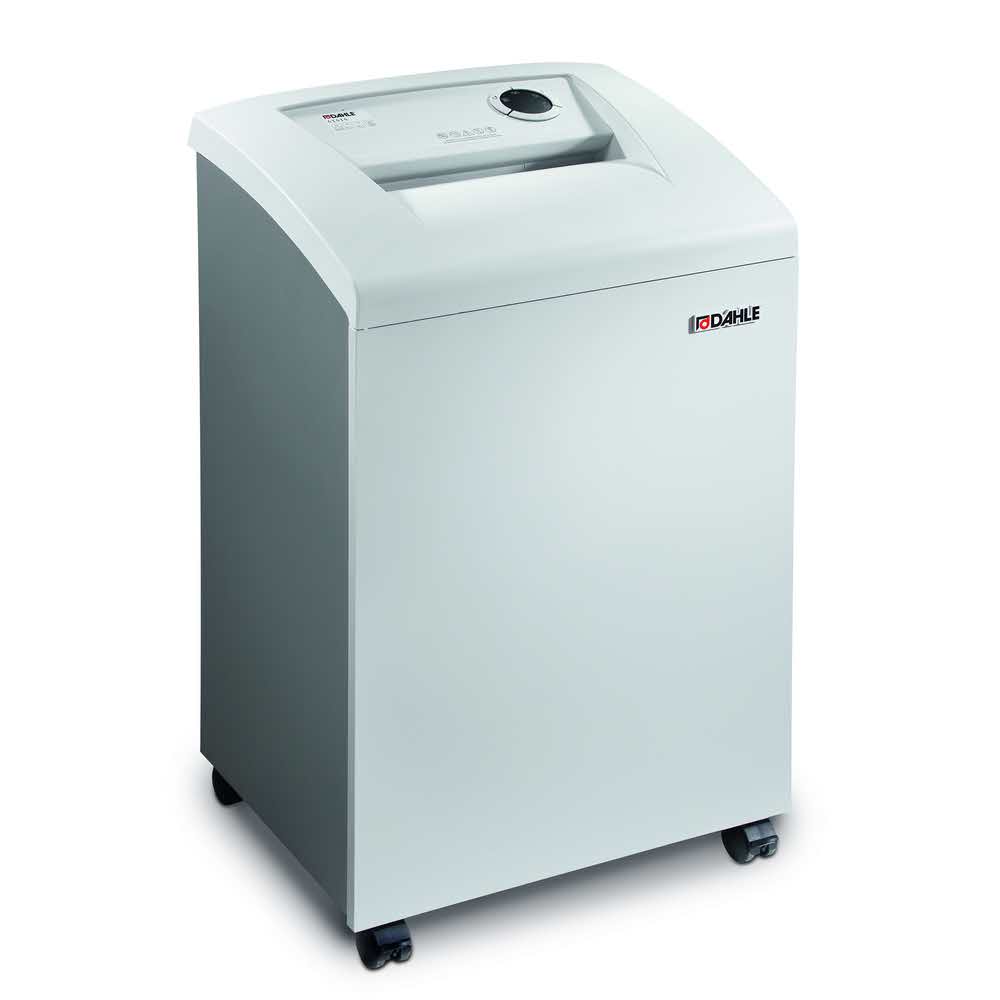 Posiada monolityczne wałki tnące wykonane z twardej stali, odporne na zszywki i spinacze biurowe.