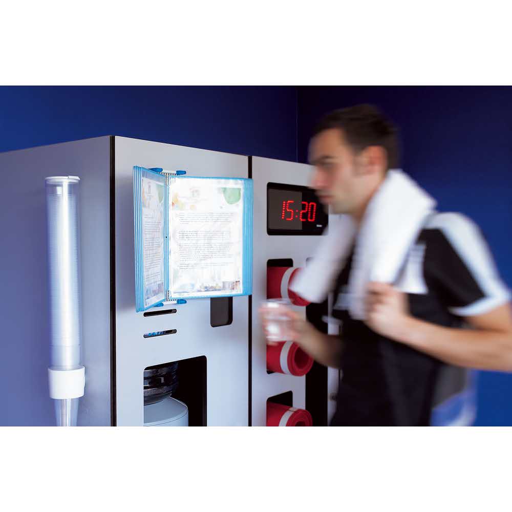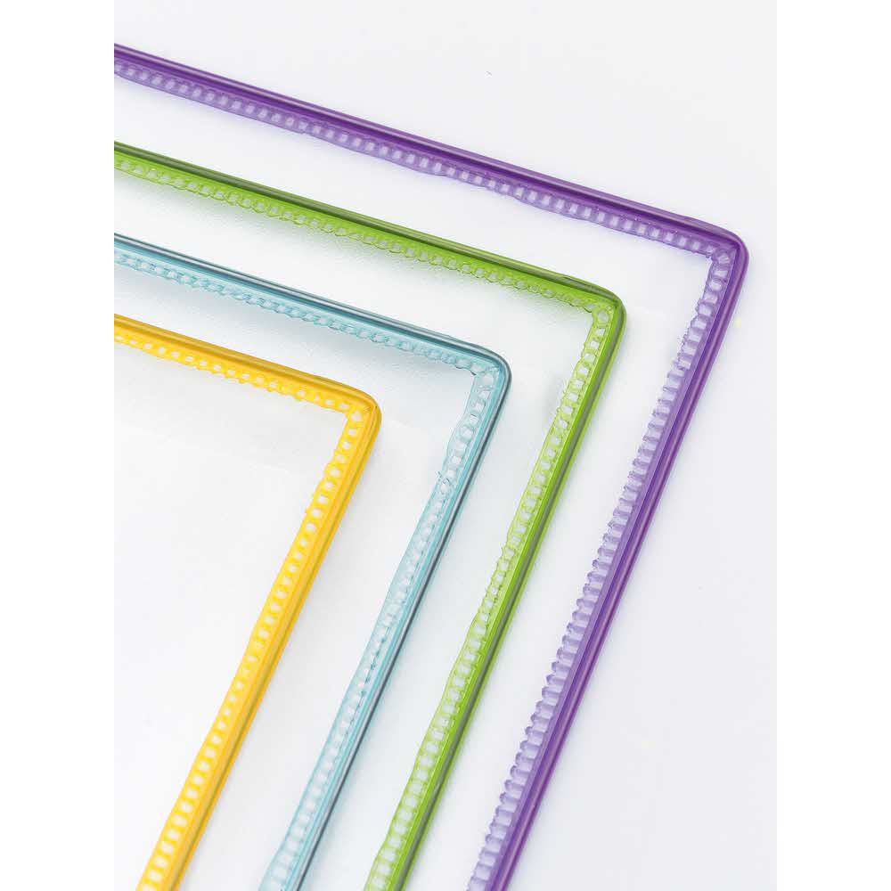 System przeznaczony do montowania na pionowych powierzchniach. Ramki paneli wykonane z drutu stalowego, dzięki czemu zachowują one sztywność i zapewniają estetykę prezentowanej treści. Kolorowe ramki w żywych półprzezroczystych kolorach przyciągają uwagę, a zakładki indeksujące pozwalają na lepszą organizację treści. System składa się z 10 obrotowych paneli prezentacyjnych w danym kolorze oraz 5 zakładek indeksujących. Zestaw zawiera również niezbędne materiały montażowe. Dzięki szeregowemu łączeniu elementów możliwa jest ekspozycja dużej ilości informacji.
