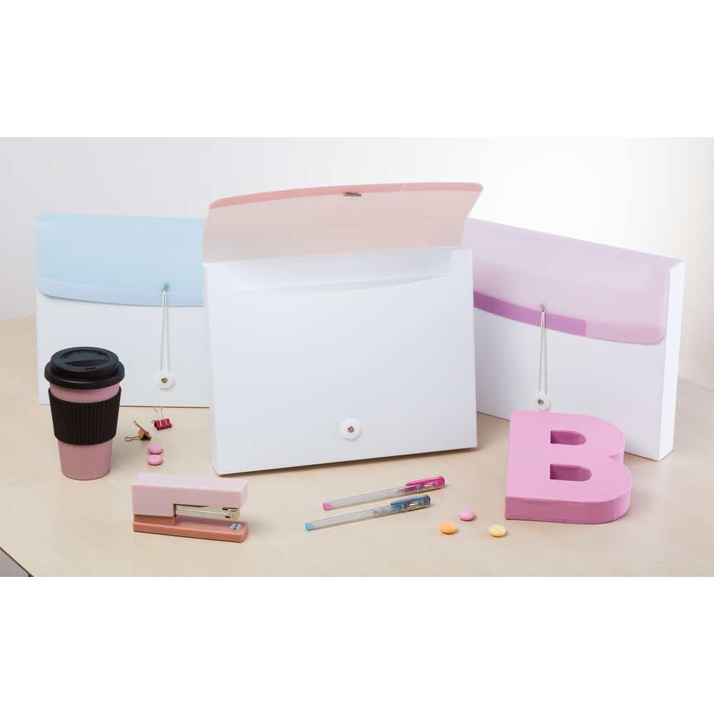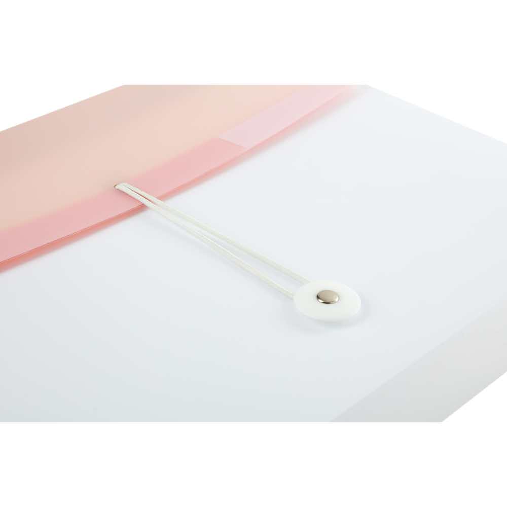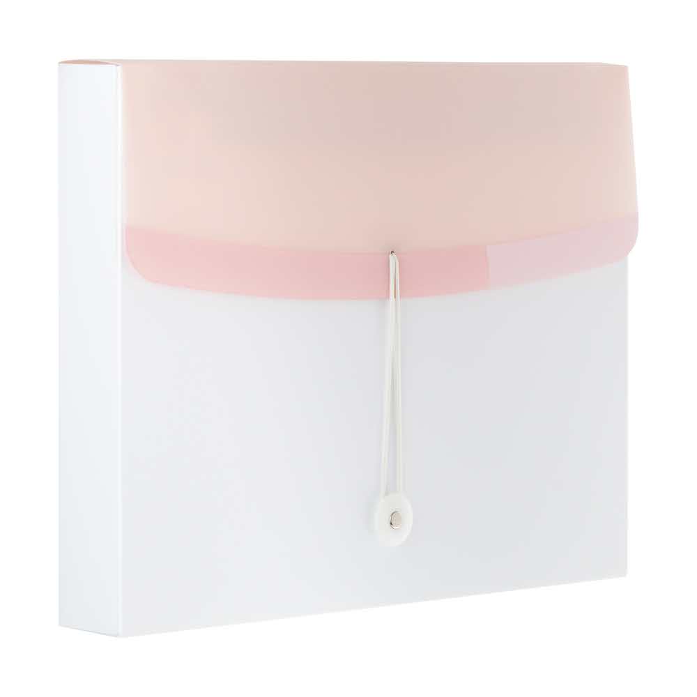 – Wygodne zamknięcie z gumką i guziczkiem zapobiega wysuwaniu się dokumentów