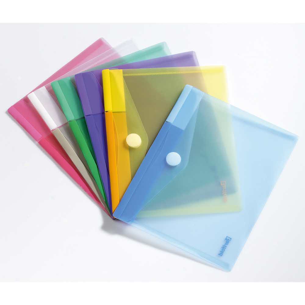 Teczka kopertowa marki Tarifold w formacie A4. Segreguj, chroń i prezentuj swoje dokumenty jednocześnie dbając o swoje zmysły – oto wyzwanie serii t-collection. Daj się pochłonąć miłym i przyjemnym w dotyku materiałom. Idealne zarówno do transportu dokumentów jak i do biurowej archiwizacji. Bardzo modne pastelowe kolory. Zamknięcie na zatrzask. W 20% wykonany z gładkiego, lśniącego polipropylenu. Wymiary: 316 x 240 mm. Teczka jest idealna na dokumenty w formacie A4. Dostępne kolory: (po 2 sztuki: niebieskiego, fioletowego, zielonego, żółtego, różowego, przezroczystego). Pojemność: do 70 arkuszy A4 o wadze 80 g. Jednostka sprzedaży: 12 sztuk w foliowym etui a ich waga to 356 g. Opakowanie zbiorcze: 5 x 12 sztuk – biały karton o wymiarach 330 x 255 x 125 mm. Kod kreskowy mieści się na każdej sztuce koperty.