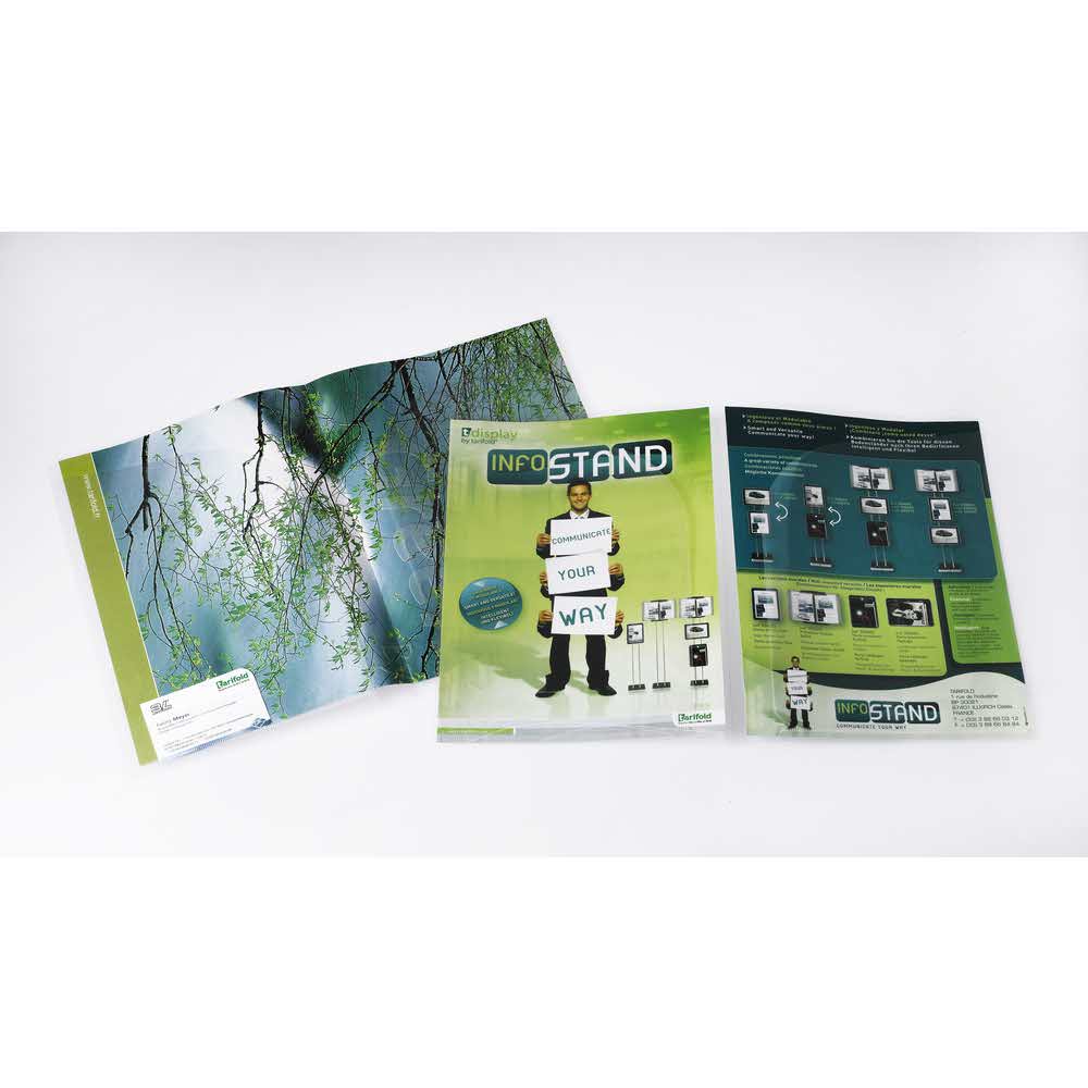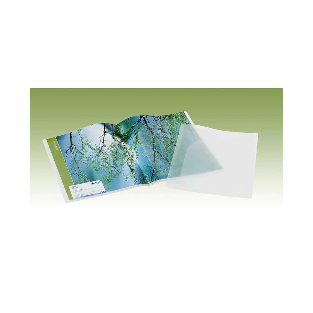 Wykonany z wysokiej jakości antyodblaskowego, w 100% odnawialnego materiału zwanym polipropylenem. Jest to podwójny folder w formacie A4. Przyjemny w dotyku. Wyposażony w okienko na wizytówkę. Folder jest odporny na zabrudzenia, łatwo zmywalny. Nie zawiera zbędnych naklejek oraz wkładek. Mieści się w nim do 50 arkuszy A4 oraz do 30 A3. Dostępny w serii Green line, tylko przeźroczysty kolor. Opakowanie zawiera 12 sztuk.