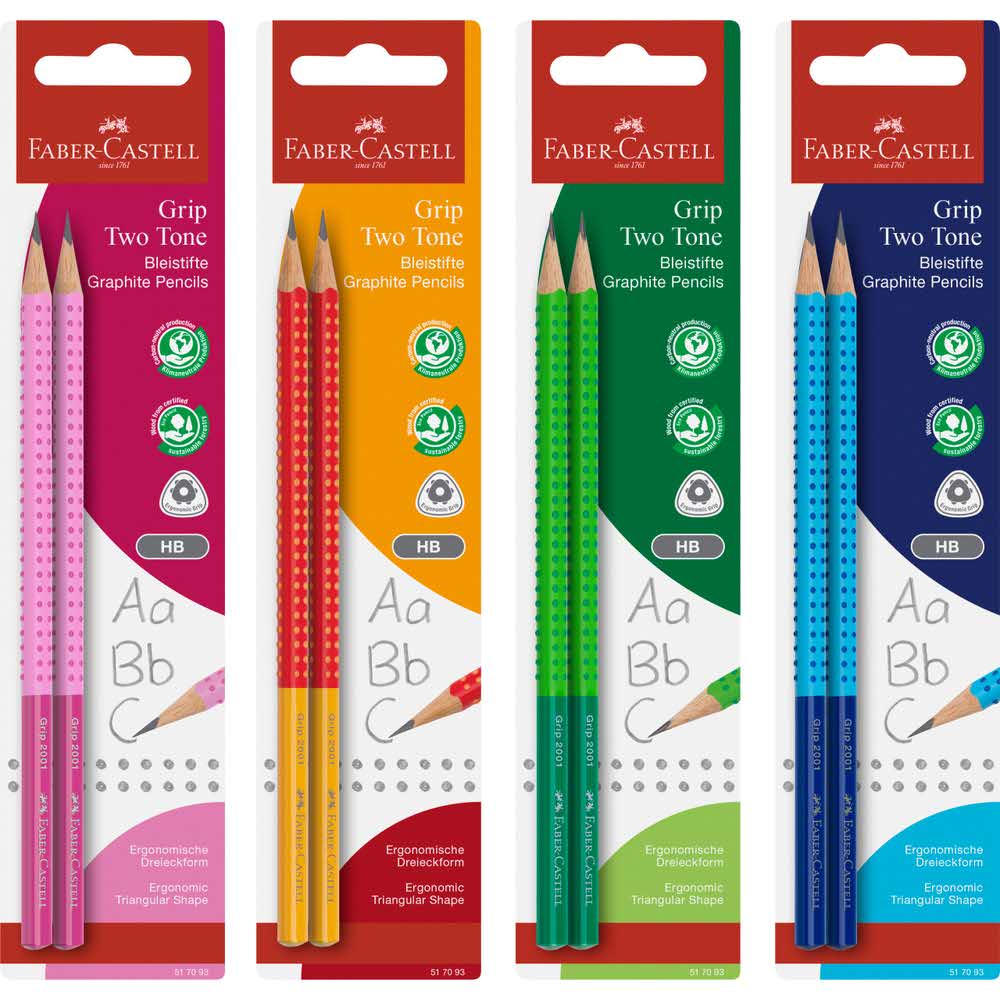 Ołówek grafitowy Grip 2001 Two Tone FABER-CASTELL. Opakowanie blistrowe 2 szt. Mix 4 kolorów.