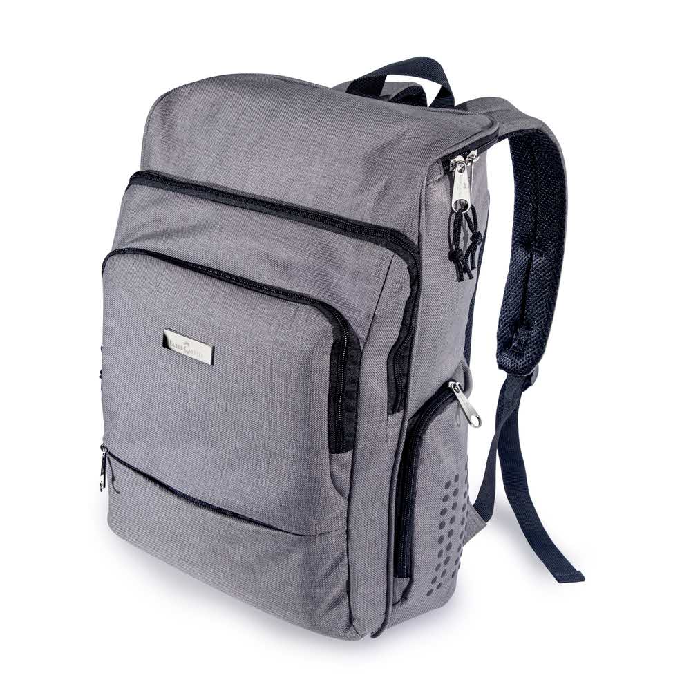 Plecak GRIP Faber-Castell o dużej pojemności 17 litrów, ze zintegrowaną przegrodą na laptopa. Łącznie 3 przegrody i 2 boczne kieszenie na zamek. Unikalny design GRIP. Nie zawiera PVC. Ergonomiczne i wygodne szelki. Kolor szary.