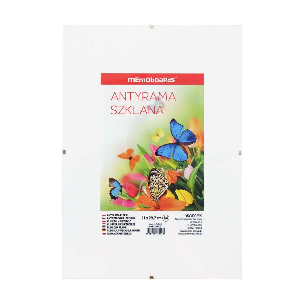 Antyrama szklana o wym. 10×15 cm. Szlifowane szkło o grubości 2 mm. Twarda płyta HDF o grubości 3 mm zapobiega odkształceniom i uszkodzeniom. Stanowi doskonały element dekoracyjny dla każdego wnętrza domu, biura, restauracji. Umożliwia eksponowanie zdjęć, obrazów, plakatów, dyplomów.