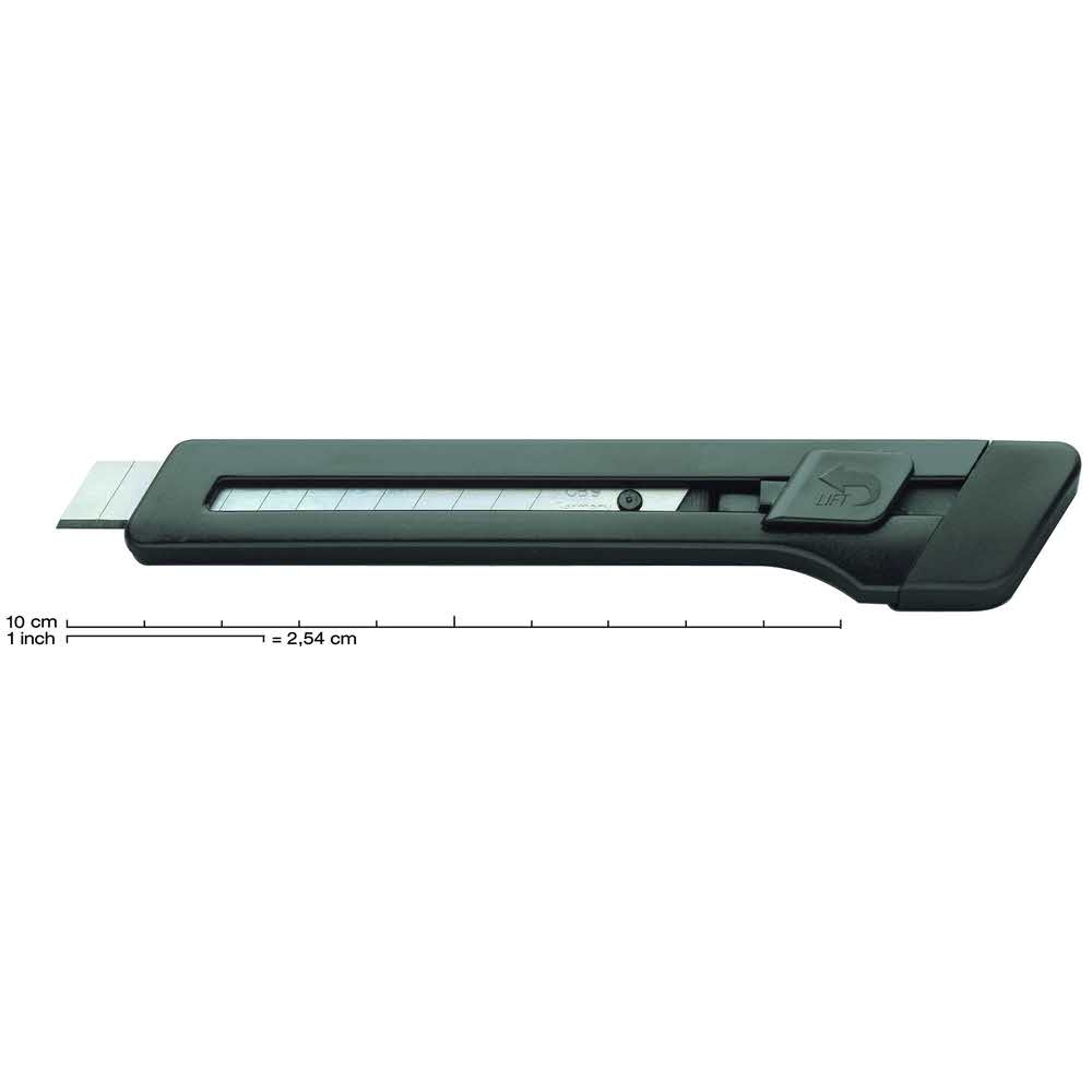 Mały, poręczny, kieszonkowy model nożyka z klipsem. Specjalna nakładka do bezpiecznego odłamywania zużytych ostrzy.