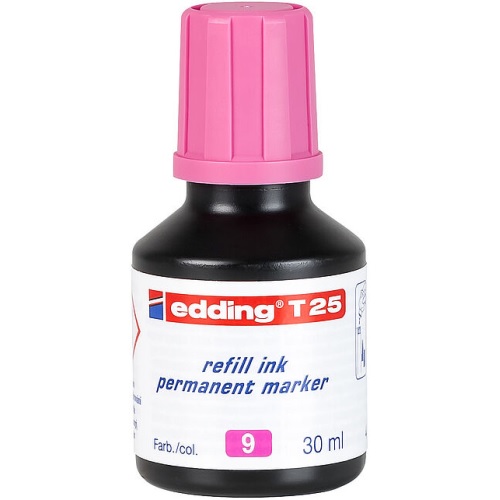 Tusz do ponownego napełniania markerów niezmywalnych edding 2000 C, 2200 C, No.1, 400, 500, 550, 800, 850, 370, 390, 21 i 22. Niezmywalny tusz o słabym zapachu, w butelce z dozownikiem kroplowym. Nadaje się również do bezpośredniej aplikacji przy użyciu pędzli, piór, matryc i pieczątek. Zawartość: 30 ml. Kolor różowy.