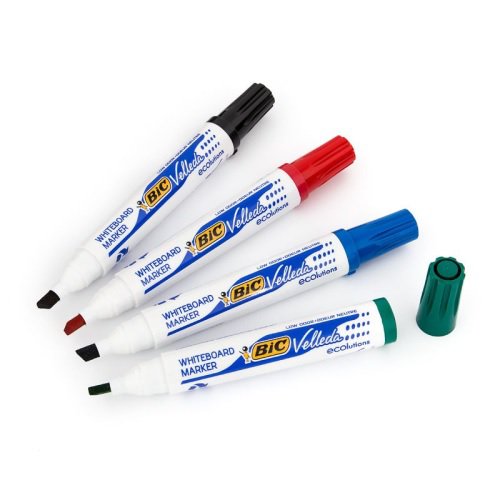 Marker do białych tablic suchościeralnych Bic Velleda 1751 z tuszem na bazie alkoholu o neutralnym zapachu. Posiada akrylową blokadę końcówki.