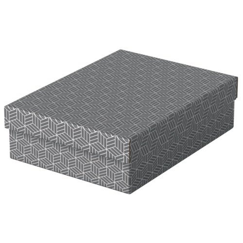 Zestaw trzech nowoczesnych i stylowych tekturowych pudełek ze zdejmowaną pokrywą, idealnych do zapakowania prezentów lub szybkiego wykreowania w domu nowego miejsca do przechowywania. Można je używać oddzielnie lub ustawiać na półkach i regałach, aby mniejsze rzeczy, takie jak zdjęcia czy dokumenty osobiste były przechowywane w uporządkowany i łatwy do znalezienia sposób. Dodaj wstążkę i zapakuj prezent! Po wyjęciu prezentu obdarowany może wykorzystać pudełko do przechowywania drobiazgów, dzięki czemu otrzyma 2 prezenty w jednym. Wykonane z mocnej tektury falistej, w 100% pochodzącej z recyklingu i w 100% nadającej się do ponownego przetworzenia, opatrzonej certyfikatem FSC. Mają gładką, łatwą do czyszczenia powierzchnię z dwukolorowym, geometrycznym wzorem, dopełniającym styl wnętrza. Pudełka są dostarczane na płasko, do samodzielnego złożenia, a ich montaż jest szybki i łatwy. Po złożeniu bokipudełka tworzą podwójne ścianki, dzięki czemu pudełka są mocne i dobrze chronią zawartość. Wszystkie mają ten sam rozmiar.