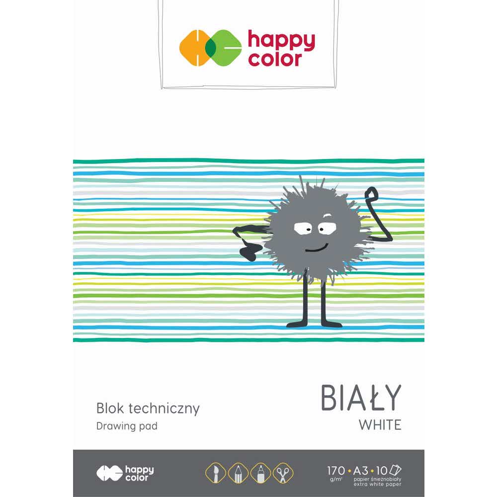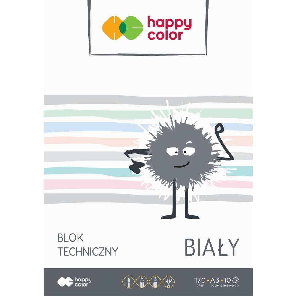 Happy Color, Blok techniczny, biały, A3, 170g, 10 arkuszy HA 3550 3040-0