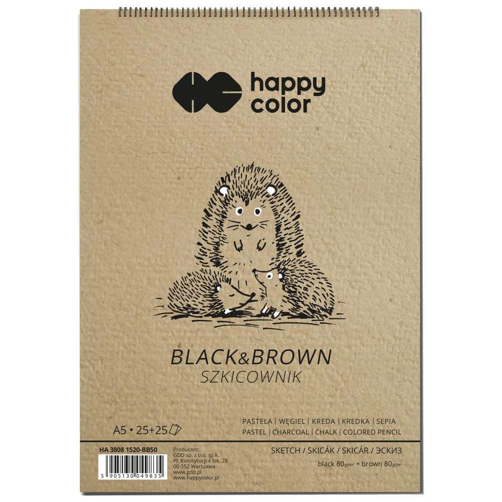Happy Color, Szkicownik na spirali BLACK&BROWN, A5, 80g, 50 arkuszy HA 3808 1520-BB50