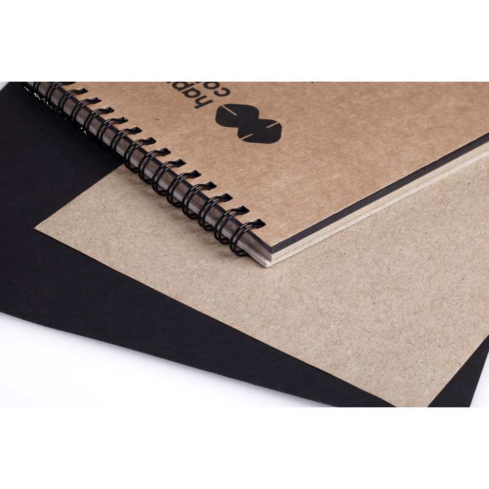 Szkicownik na spirali na sztywnym kartonowym podkładzie z dwoma rodzajami papieru – czarnym i brązowym.