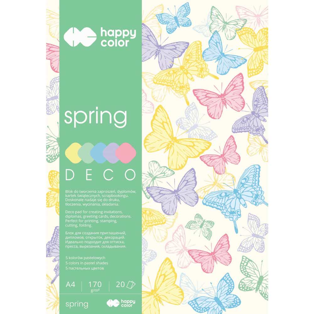 Happy Color, Blok Deco Spring, 5 kolorów, A4, 170g, 20 arkuszy HA 3817 2030-110